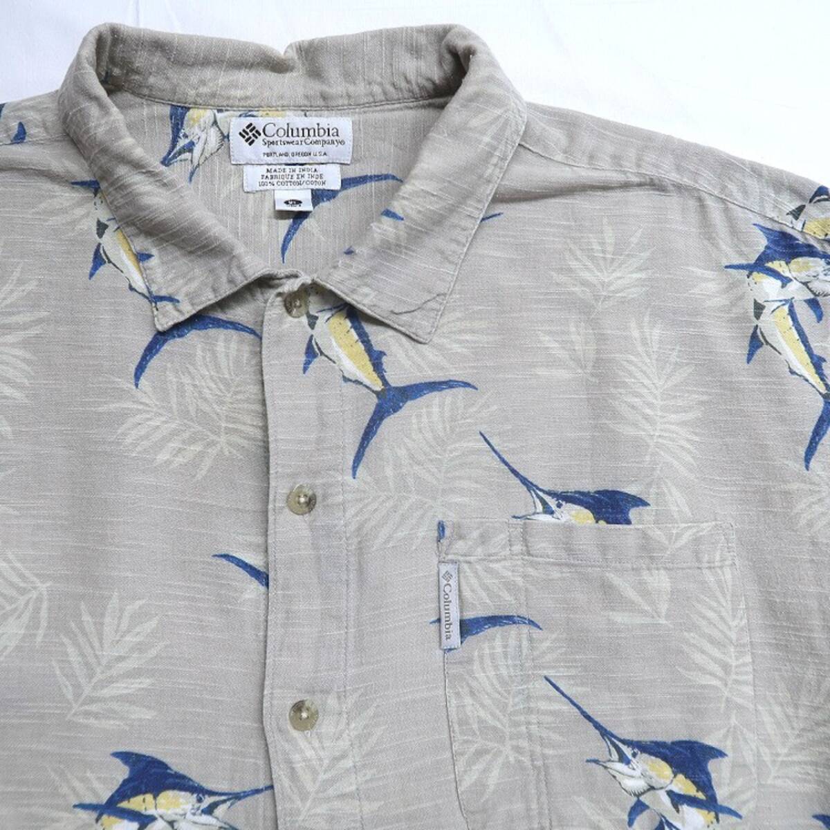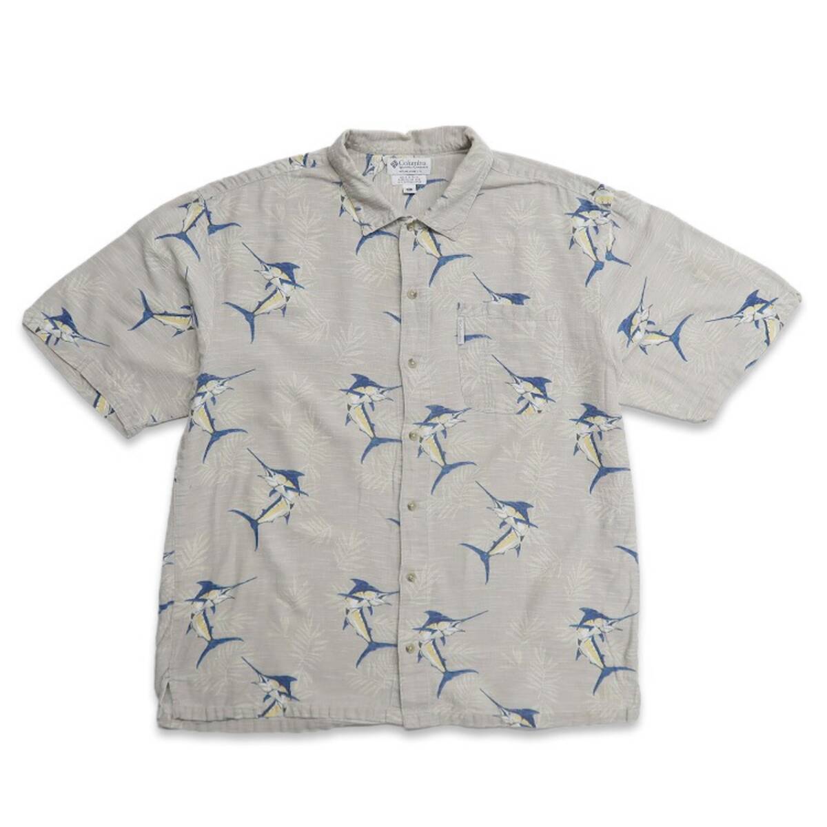 古着 コロンビア Columbia 総柄 カジキ 半袖シャツ ボックスシャツ 表記:XL gd406857n w50801