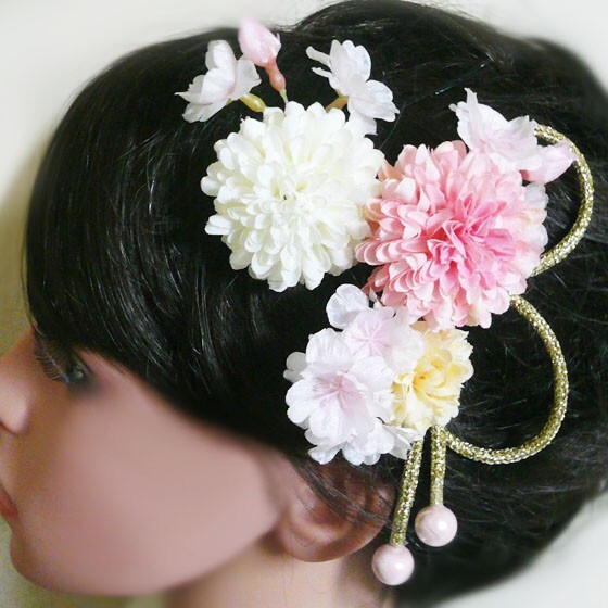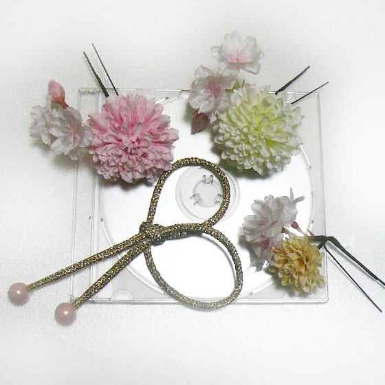 材 料: アートフラワー(マム 桜) 紐 ユーピン