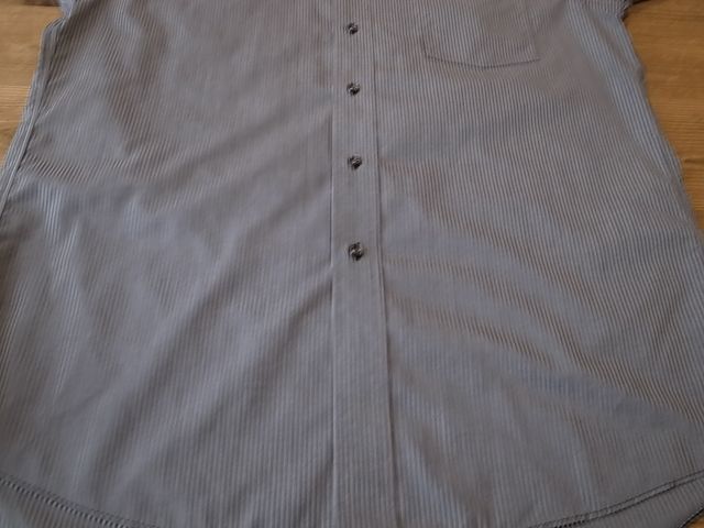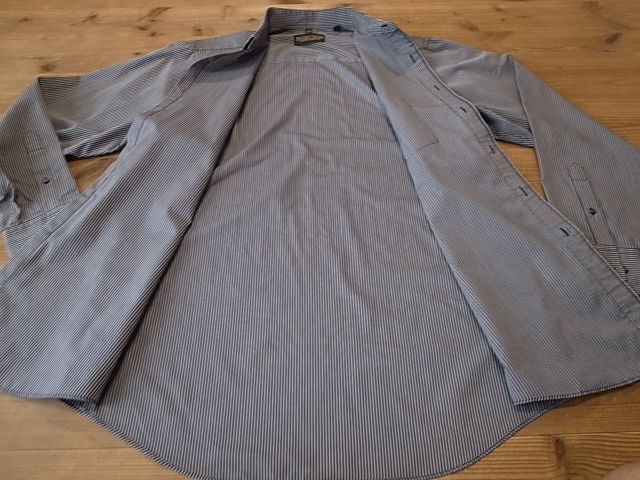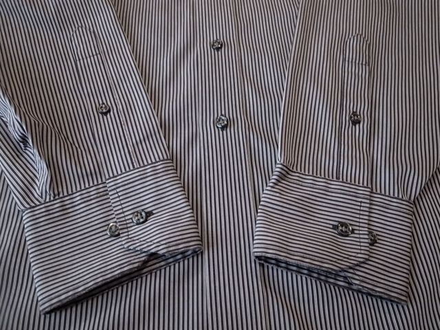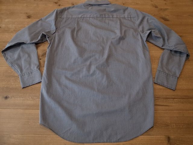 ◆ブランド 「DONALD J.TRUMP」 アメリカ古着 ●サイズ表記 16 34/35 実寸サイズ L相当 肩幅…45cm(肩先から肩先の間の長さ) 身幅…60cm(両脇を横直線に結んだ長さ) 着丈…84cm(後衿ぐり中央から後身頃裾) 袖丈…64cm(袖付けの肩先から袖先) ※平置き状態での素人採寸ですので、多少の誤差はご了承ください。 ●素材…100%COTTON ●色…グレー×黒 ストライプ柄 ●ポケット… 胸パッチポケット ●製造国表記…CHINA ●状態…使用感は少ない美品です。スペア釦付属 ★送料 全国一律 700円 佐川急便 (北海道900円 沖縄その他離島1700円) ※複数ご購入の場合、同梱発送可能です。 |