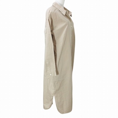 プラステ PLST 18SS コットンタイプライターシャツワンピース ミモレ丈 長袖 スキッパー M ベージュ X レディース
