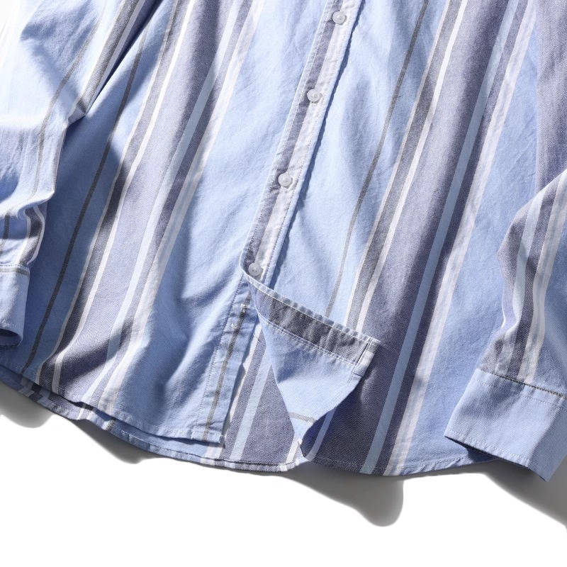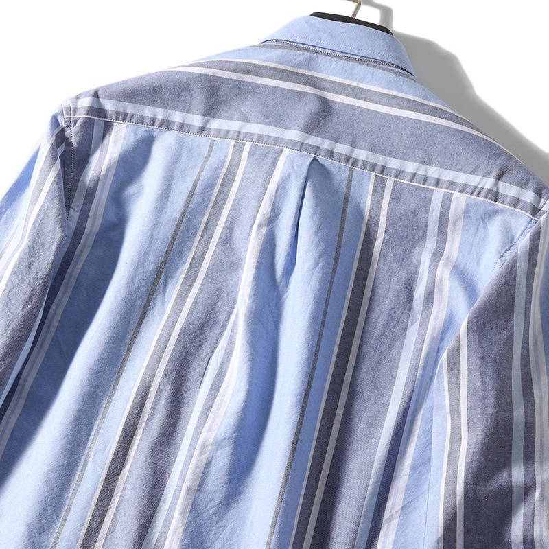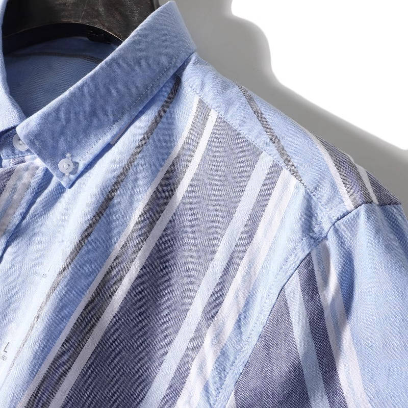 A5803-L 新品 DCKMANY 緑 ストライプ オックスフォード ウォッシュ 綿100% 長袖シャツ メンズ ボタンダウン 春秋 レギュラーカラー