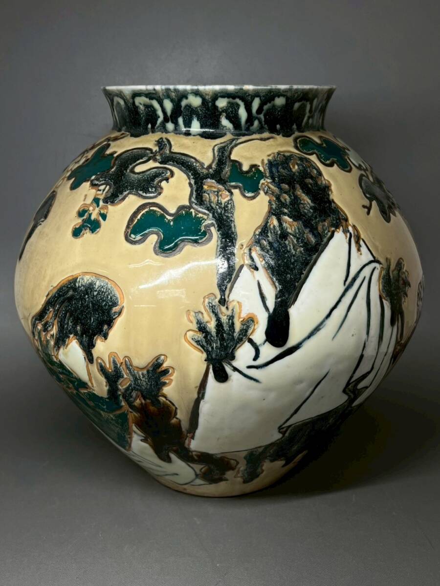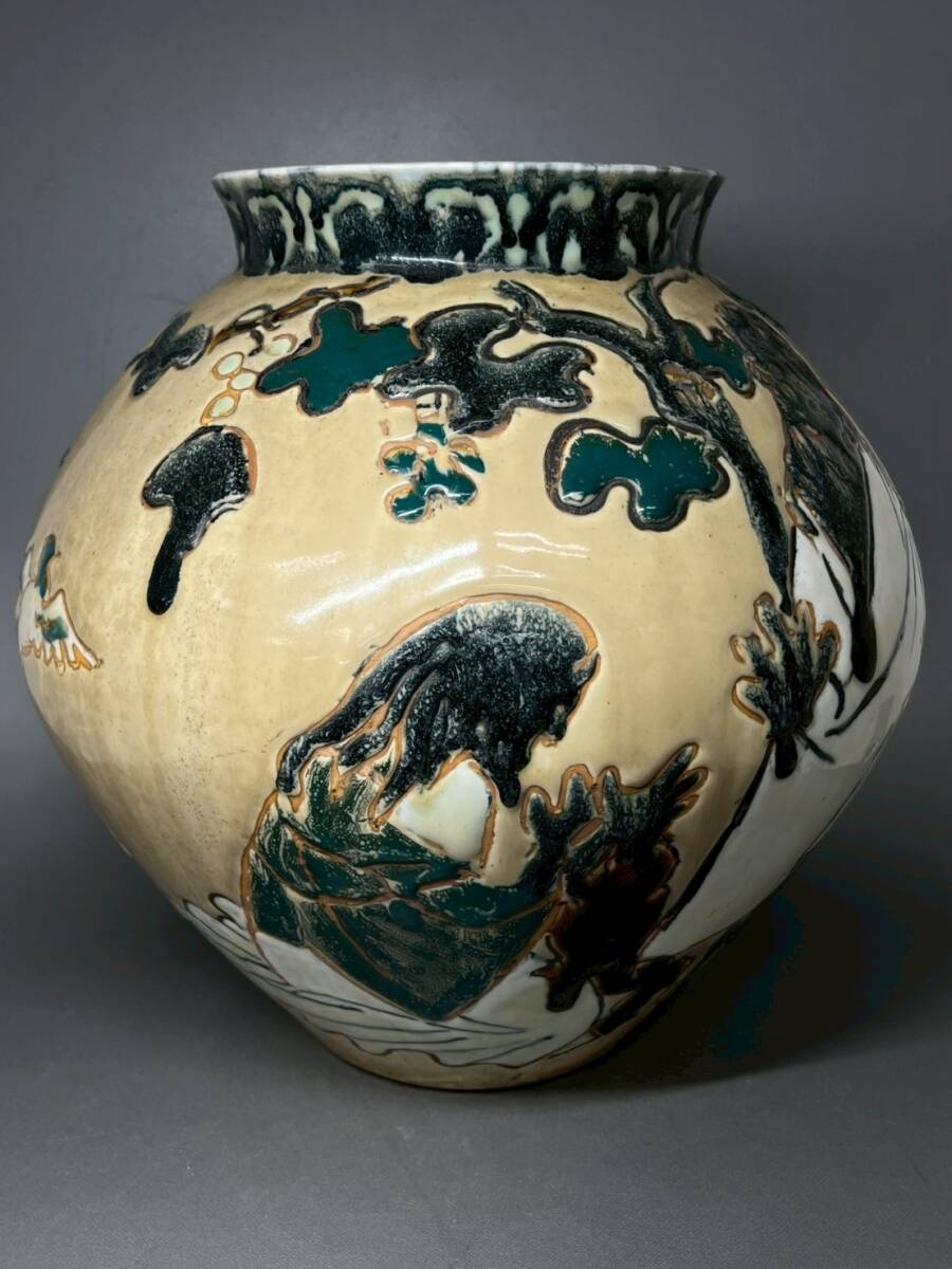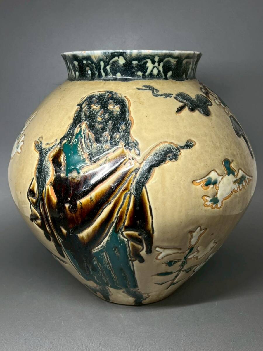 ●古陶磁 大型人物絵壺 唐物風 緑釉 浮彫細工 時代物 骨董蔵出し 置物 飾物 伝統工芸品 芸術 古美術 特大壺 壷 花瓶 長崎買取 1000円スタート ■サイズ:直径 29cm/高さ 30cm ※素人寸法の為、若干の誤差はご了承ください。 ■状態につきましては経年に伴うスレ・汚れ・小キズ などが見られます。 ※その他の細かな状態は写真にてご確認・ご了承の上 ご入札くださいませ。 ●こちらの商品などは時代物や古いお品・骨董品となり ますので、細かな状態を気にされる方・神経質な方の ご入札はご遠慮くださいませ。 |