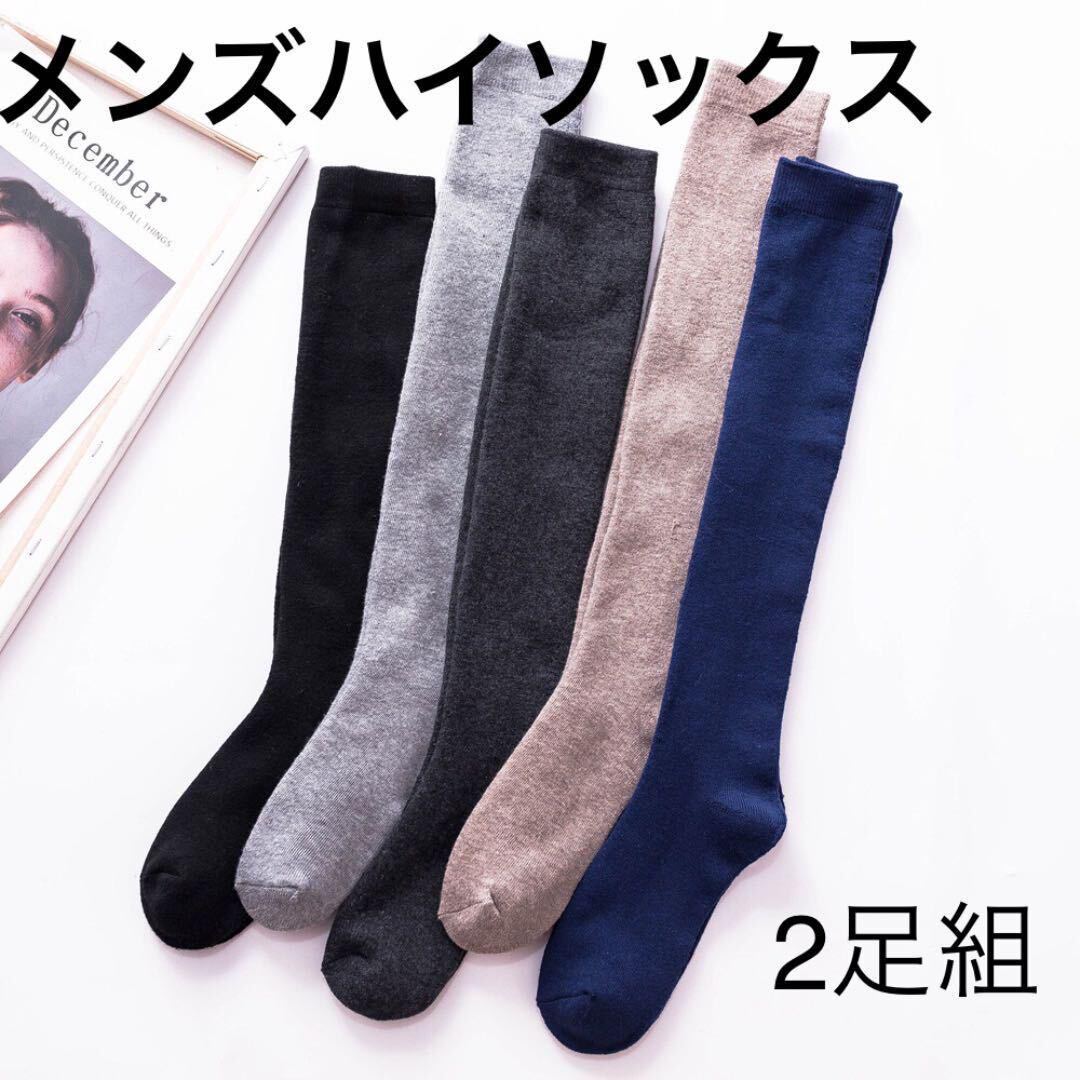 [メンズ靴下]ms2005 2足組 秋冬 無地 ハイソックス