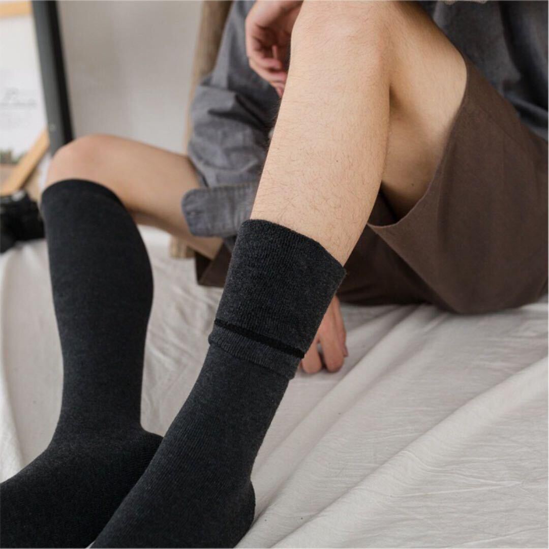 [メンズ靴下]ms2005 2足組 秋冬 無地 ハイソックス 裏起毛 ふわふわ