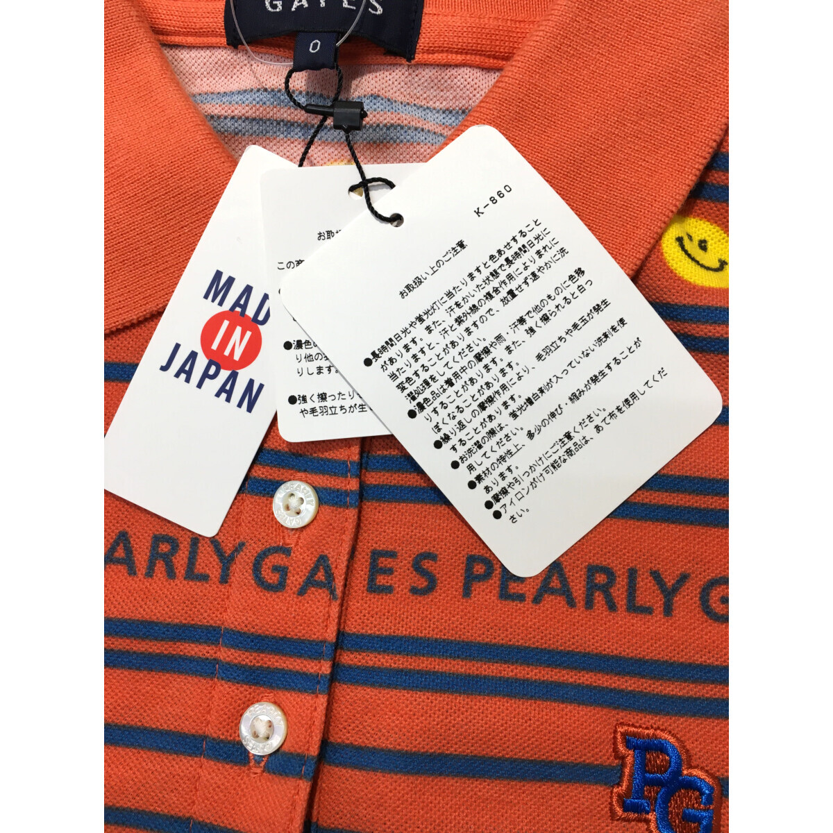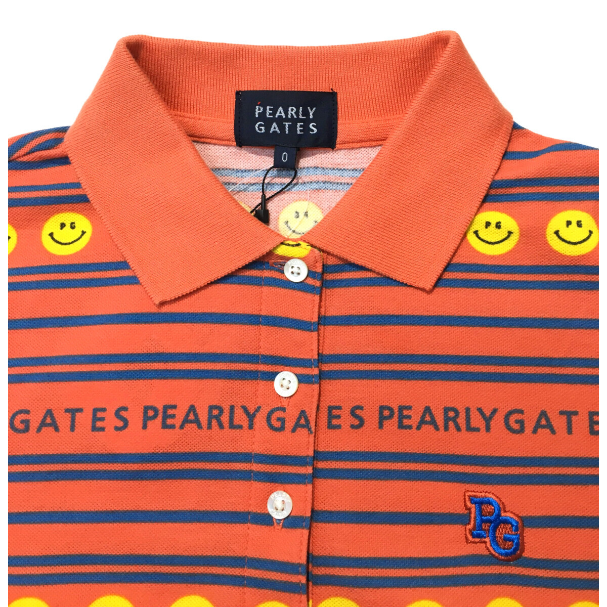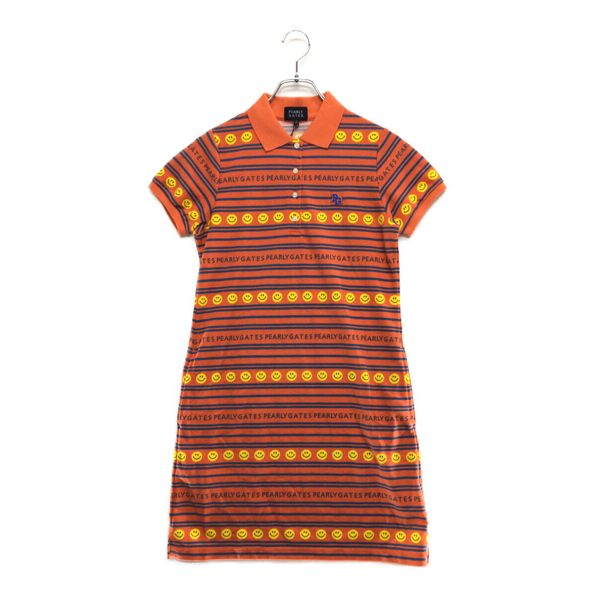 coco 未使用品【SALE】パーリーゲイツ レディース ワンピース 0(S) オレンジ 半袖 ボーダー スマイル レターパックプラス発送可 99035
