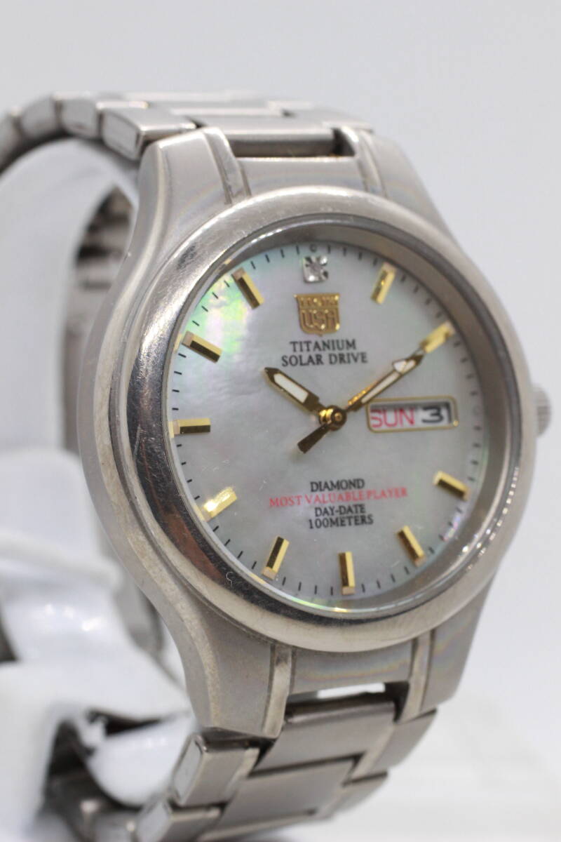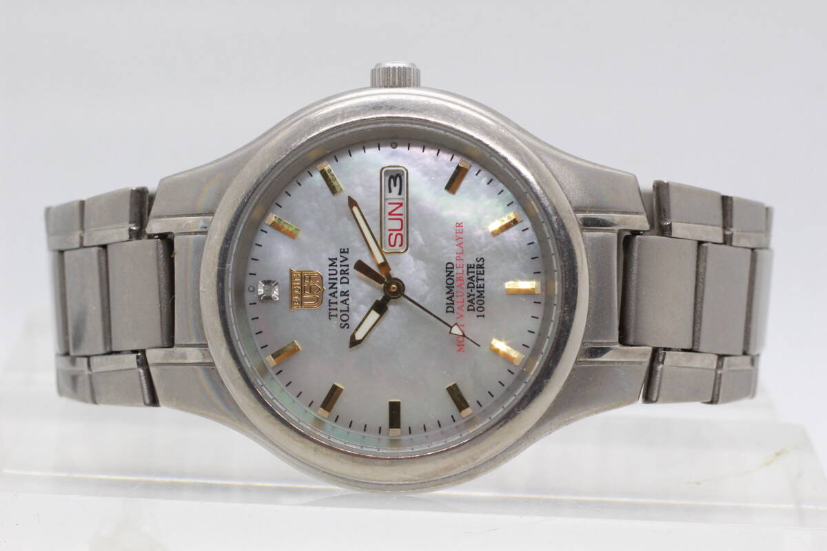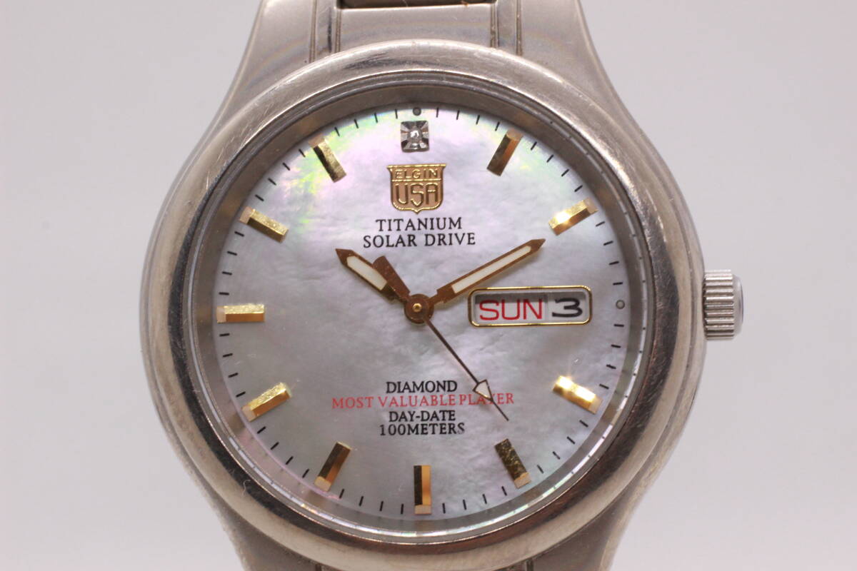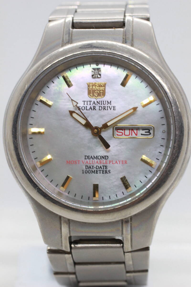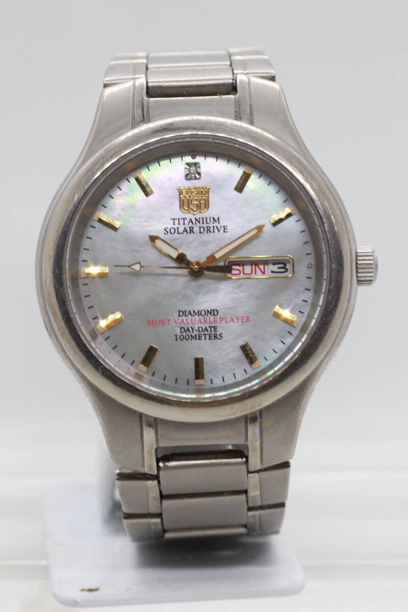 | 【ELGIN】TREASURE SOLAR DRIVE FK-1251-C 1P DIAMOND シェル文字盤 100M TITANIUM 中古品時計 25.8.3 |