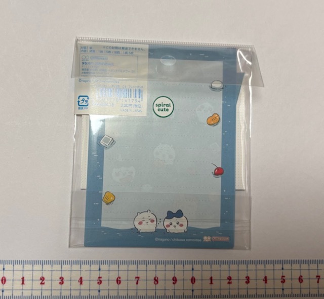 ★この封筒は郵送できません ちょっとしたお礼やメッセージに使えるミニサイズのレターセット。 キラキラな夏休みのプールみたいな、フルーツポンチの中を泳ぐちいかわ達に癒されるデザイン! サイズ(約): パッケージ:H140×W100×D7mm 便箋 :H110×W80mm 封筒 :H64×W90mm 内容:便箋(1柄×15枚)、封筒(1柄×5枚) 税込330円 一応、出品にあたり、確認はいたしましたが、もし他に汚れ、破れ、しみ、書き込み等、見落としございましたらご容赦願います。 他にも出品していますので、よかったら見てくださいね。 他の商品との同時発送も承ります。 |