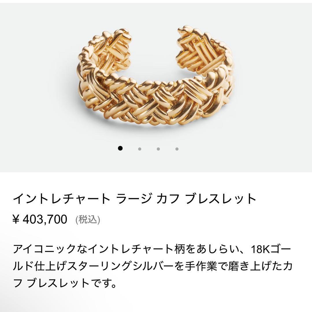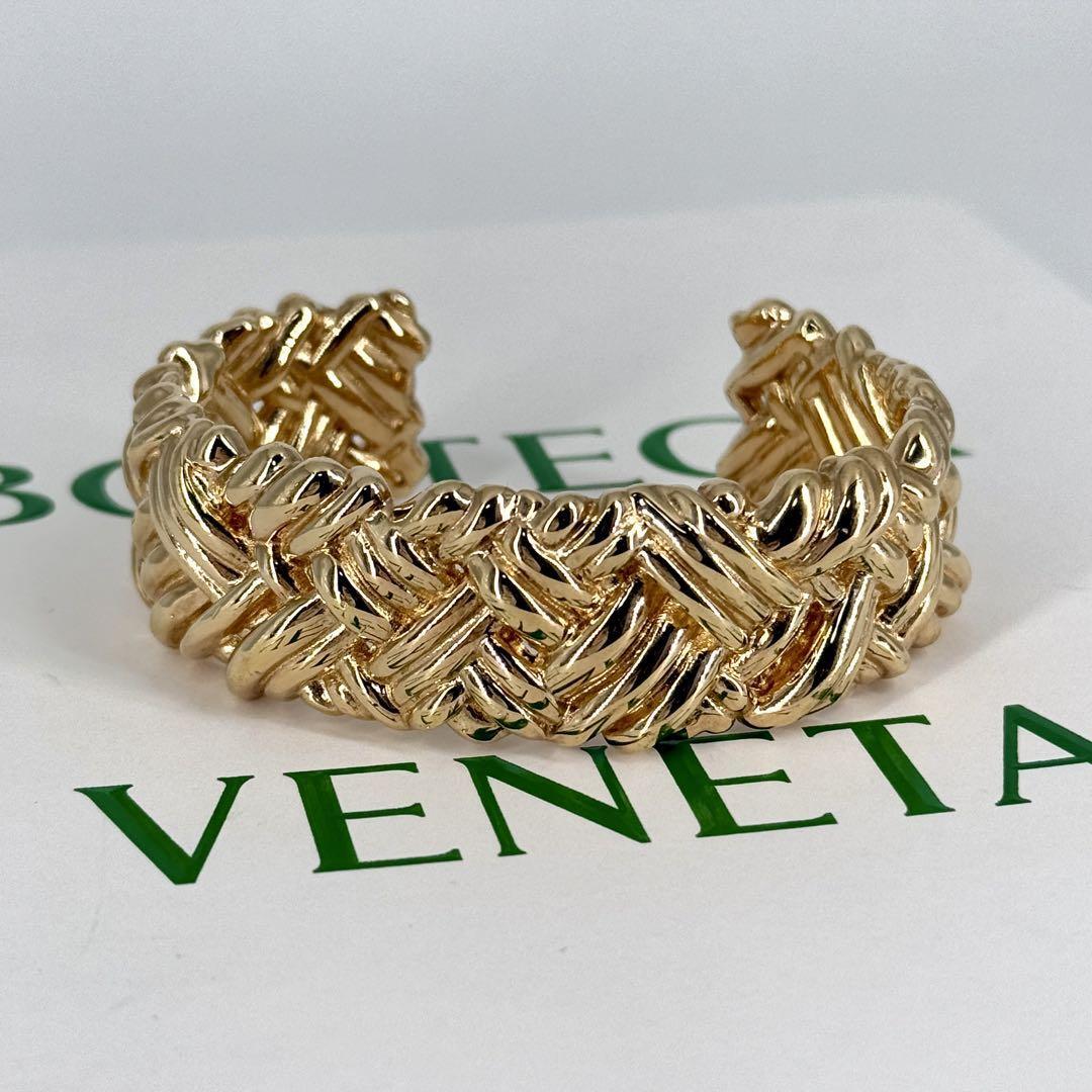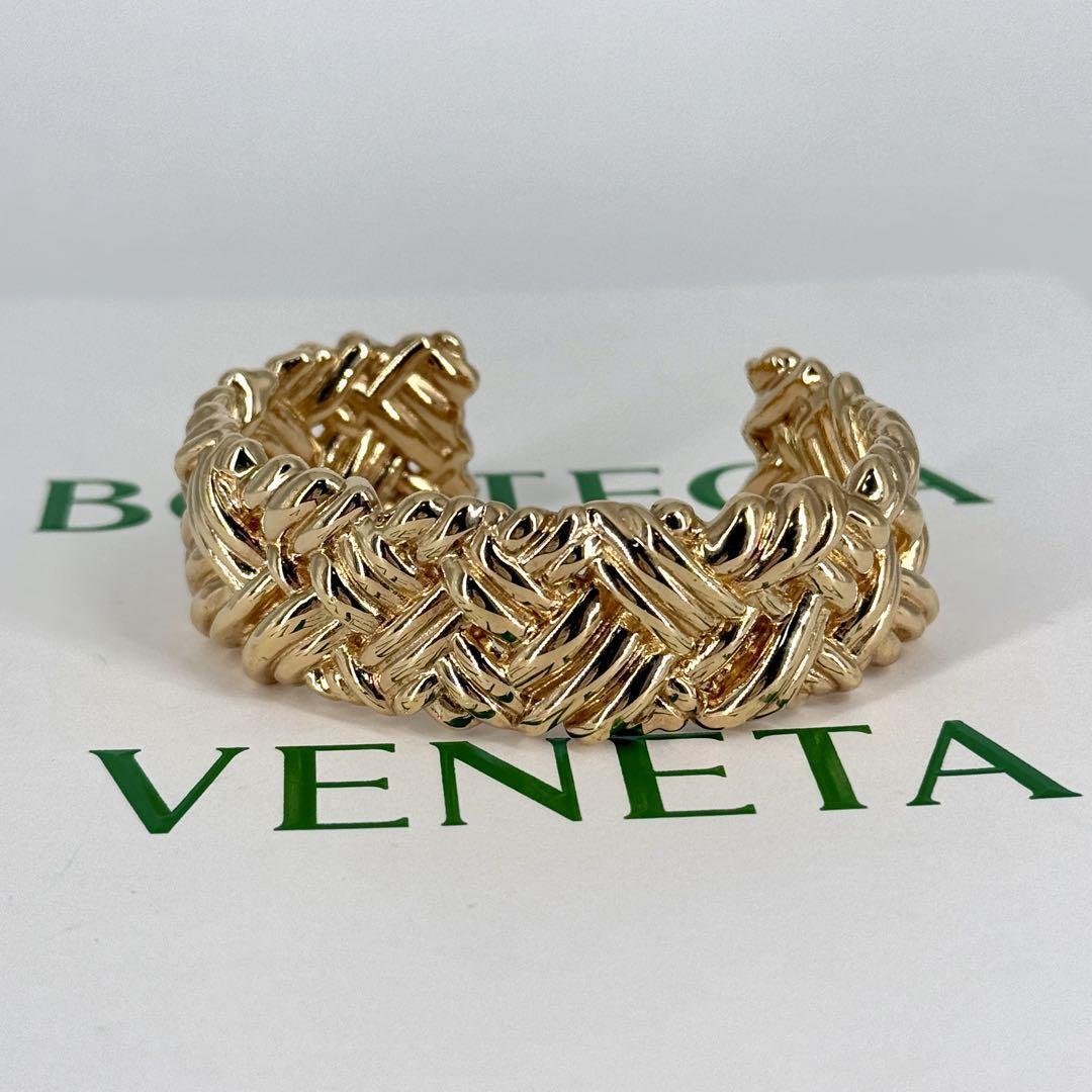 美品 ボッテガヴェネタ イントレチャート ラージ カフ ブレスレット ゴールド bottega veneta バングル 現行品