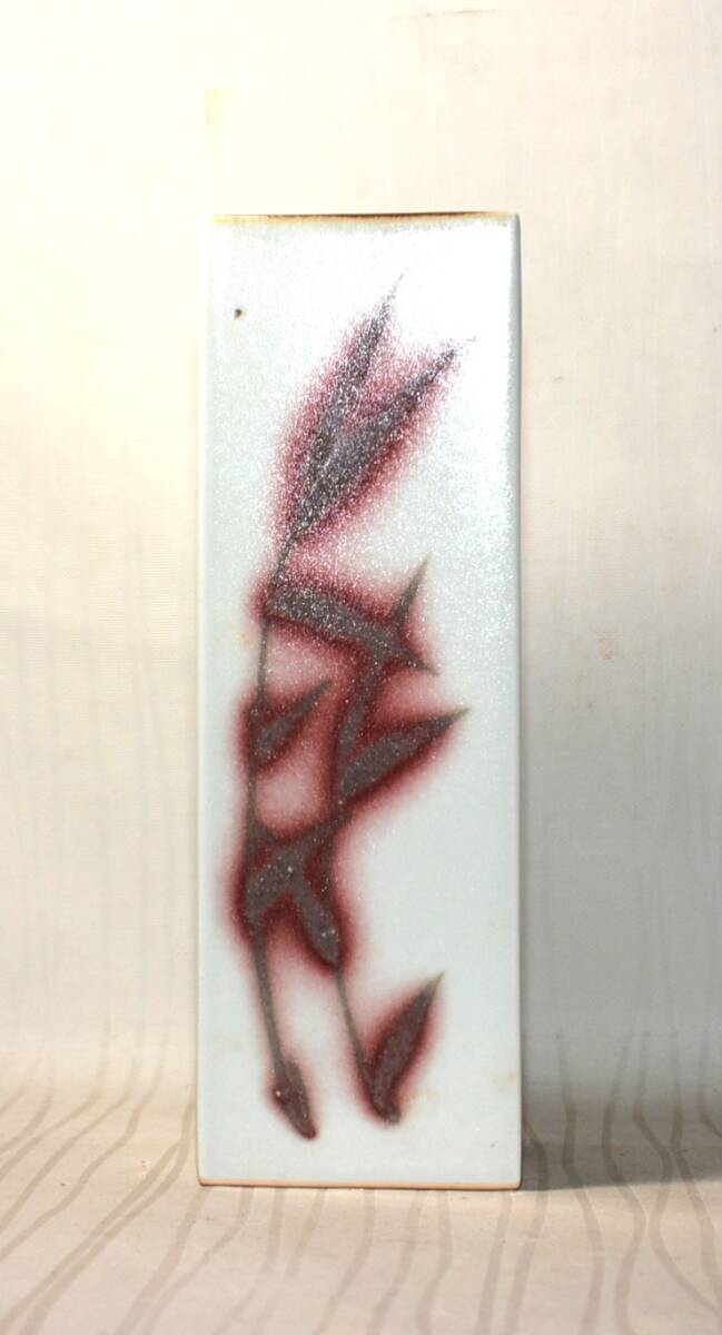43◆初荷です ◆茶道具 京焼 河合誓徳 釉裏紅花瓶 笹絵 ◆共箱 美品 師は清水六兵衛 京都市文化功労者