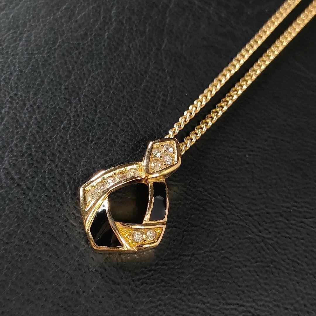 708‐7【美品】Dior ディオール ネックレス ラインストーン 菱形 ブラック ゴールド ヴィンテージ アクセサリー ペンダント メンズ ユニセックス