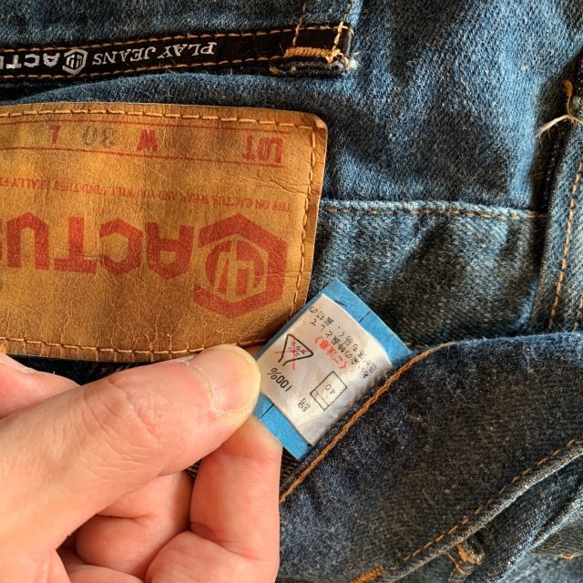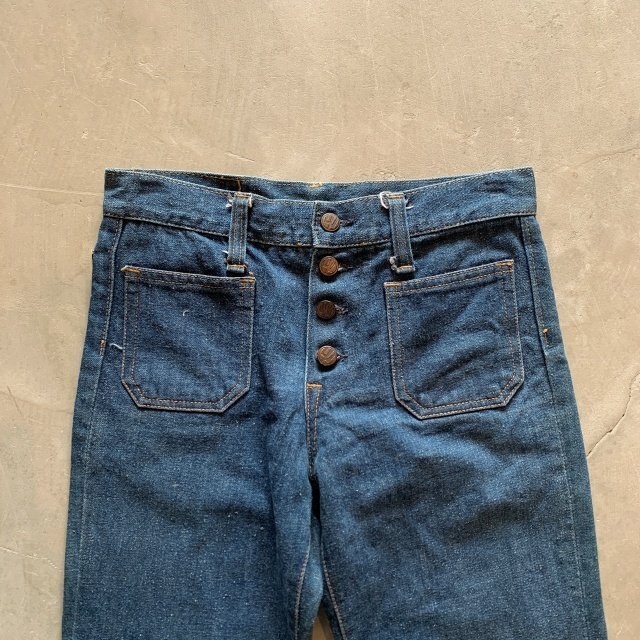 ★商品状態★ ・着用感があり、裾付近に若干のダメージが見られます。 ・古着慣れされている方でしたら問題なく着用していただける程度かと思います。 ・米国製 ★素材★ COTTON 100% デニム ★配色★ 青系 ★サイズ表記★ W30 サイズ表記の割に小さめ W28インチ相当 ・実寸を参考にして下さい。 ★実寸サイズ★ ウエスト 36㎝ 股下 82㎝ 股上 24㎝ 腿幅 25㎝ 裾幅 28㎝ ・平置きにての採寸となります。 ・若干の誤差はご了承ください。 | ||||