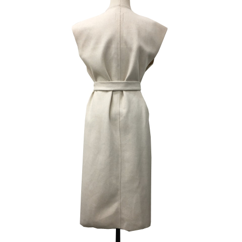 ザラ ZARA ベスト ジレ ロング リボンベルト 無地 USA S ベージュ レディース