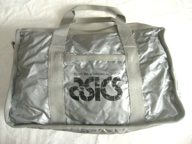 80s~90sヴィンテージASICSアシックス製メタリックシルバー スクールバッグ/スクバ(高28横48マチ18cm)。ユーズドになります、プリント擦れや汚れなど使用感あります。 ノークレームノーリターンノーキャンセルでお願いします。