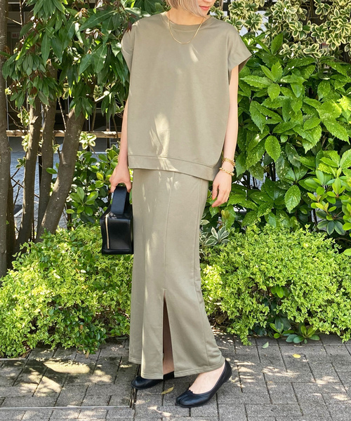 参考商品名:フレンチスリーブトップス+スリットスカート セットアップ