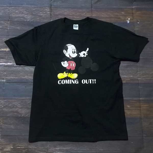 送料無料【COMING OUT!】ハゲ ミッキー / バーコード /ブラック★選べる5サイズ/S M L XL 2XL/ヘビーウェイト 5.6オンス