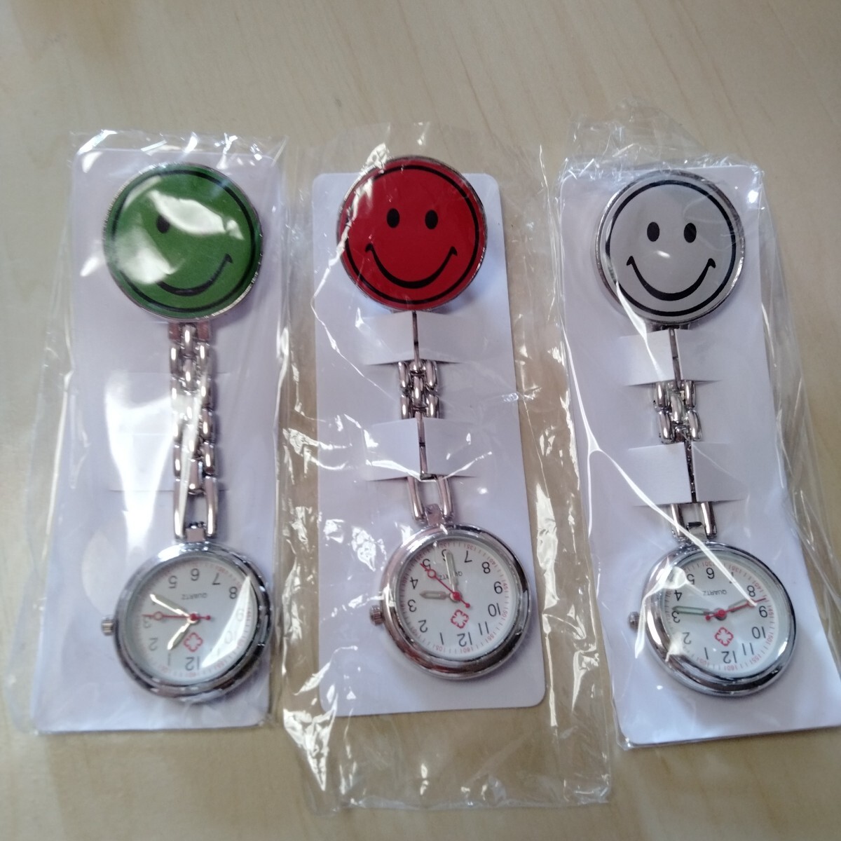 ◇スマイル ナースウォッチ クリップ式 逆さ文字盤 蓄光 クリップ時計 3本セットB