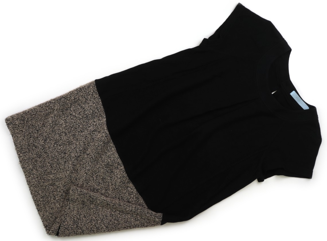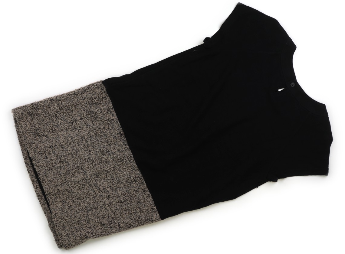 respirationです。実際のサイズ表記はM-L、バスト86-101、腹囲78-110、実寸では後中心のネックポイントから着丈約90.7cm。黒い部分はカットソー生地で、ベージュの部分はウール入りです。胸の両脇に授乳口の縦向きチャックがあります。お腹に小さいシミがあり、黒い部分に色褪せや毛玉がありますが、普段使いにいかがでしょうか。