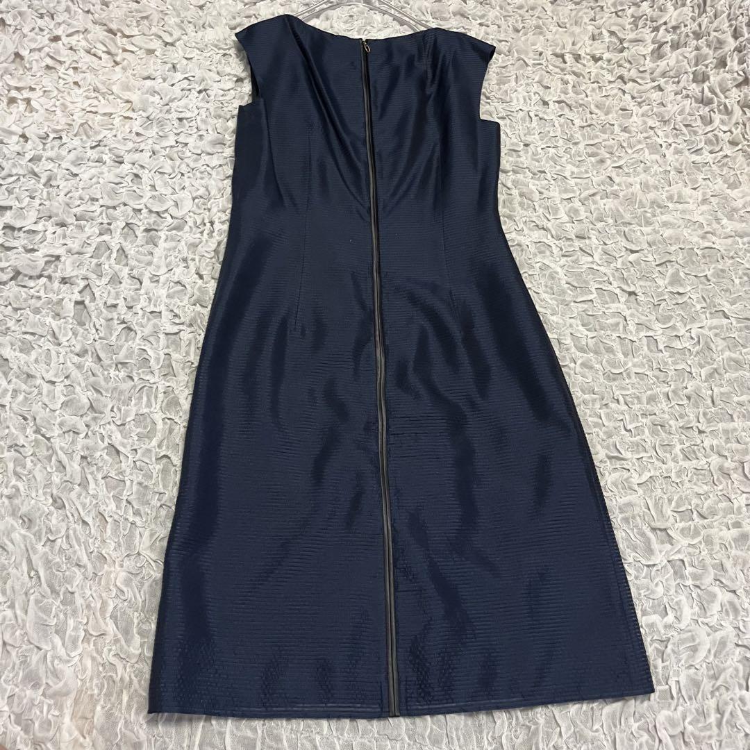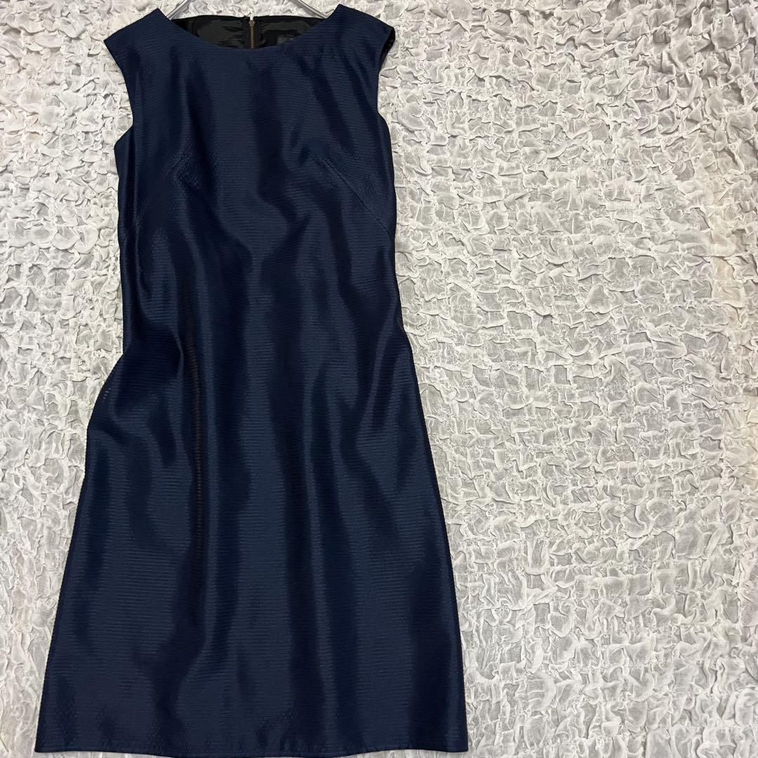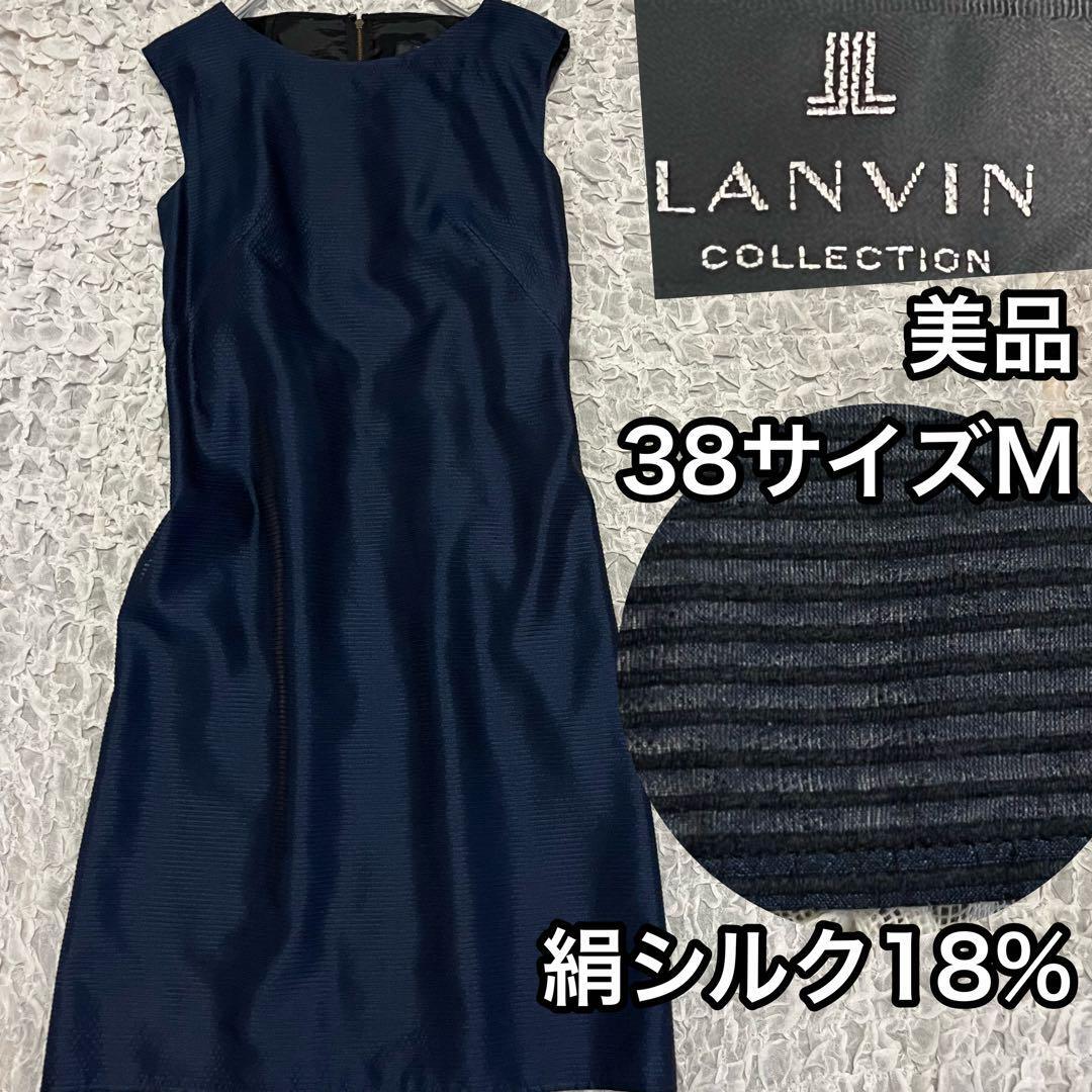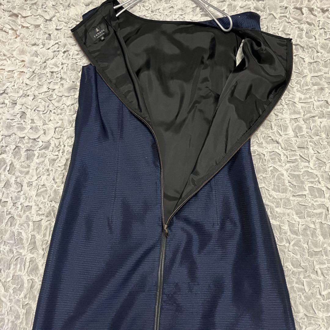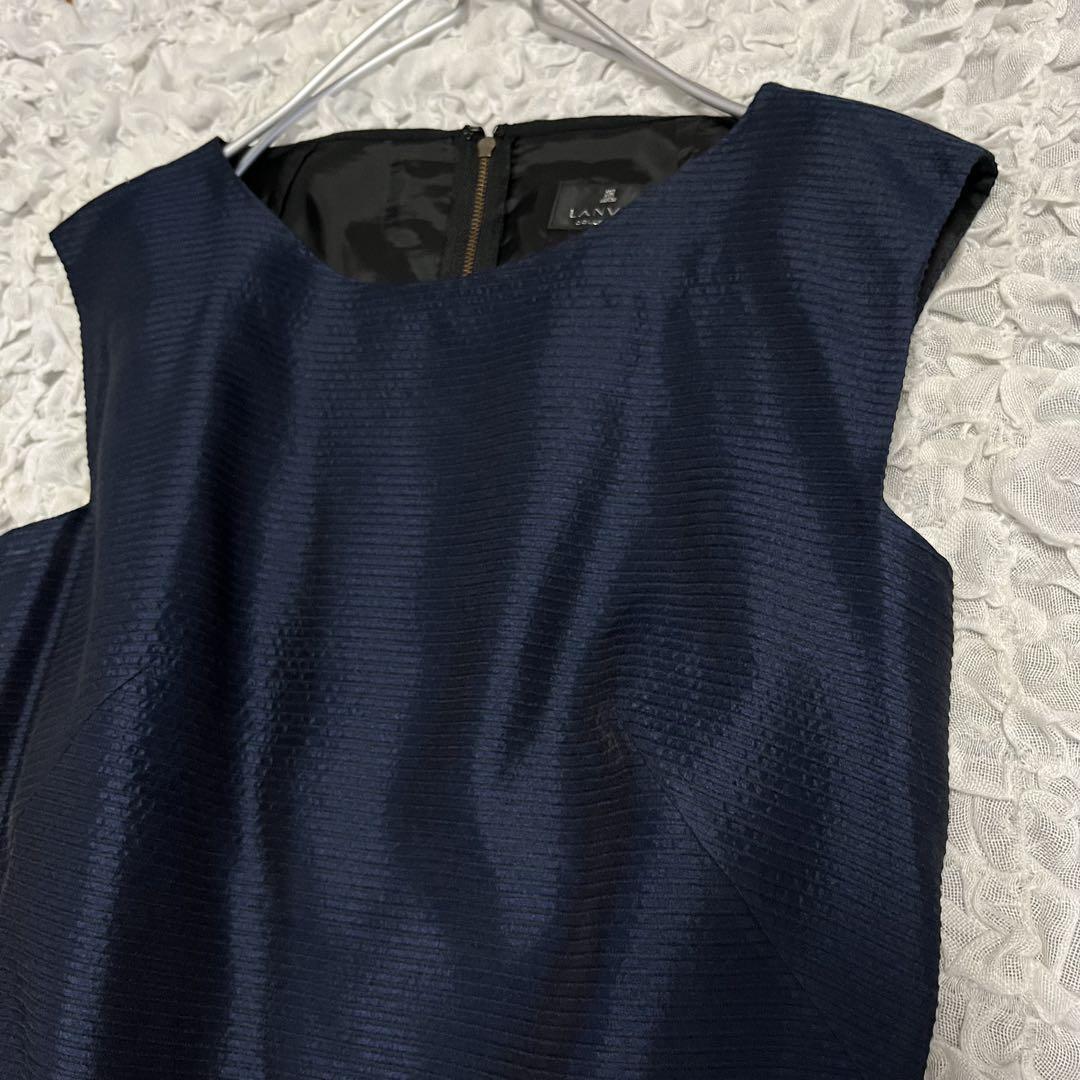 ■アイテム: 絹シルク18%【ランバンコレクション】 美品 ネイビー ノースリーブ ワンピース