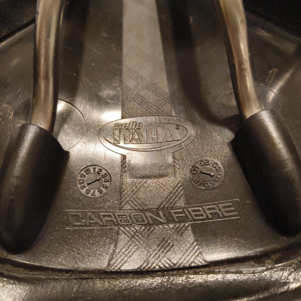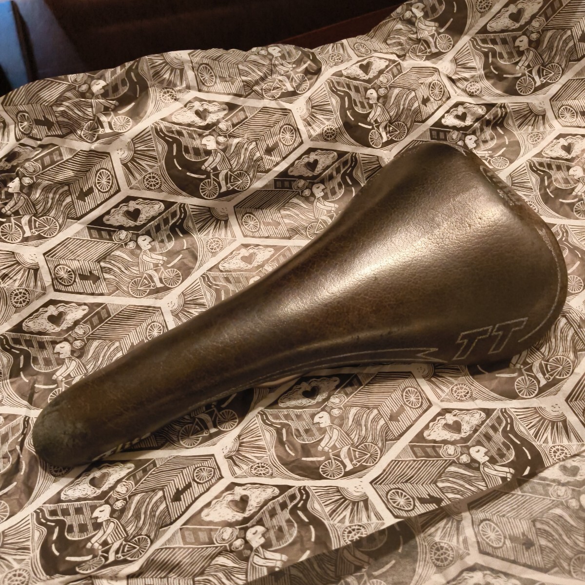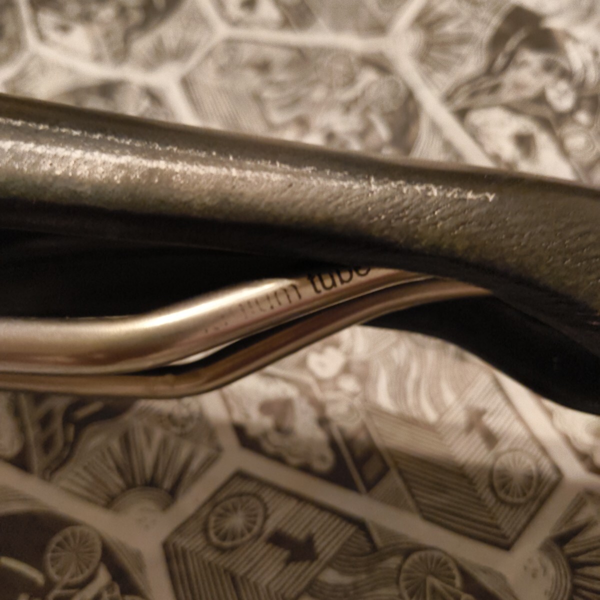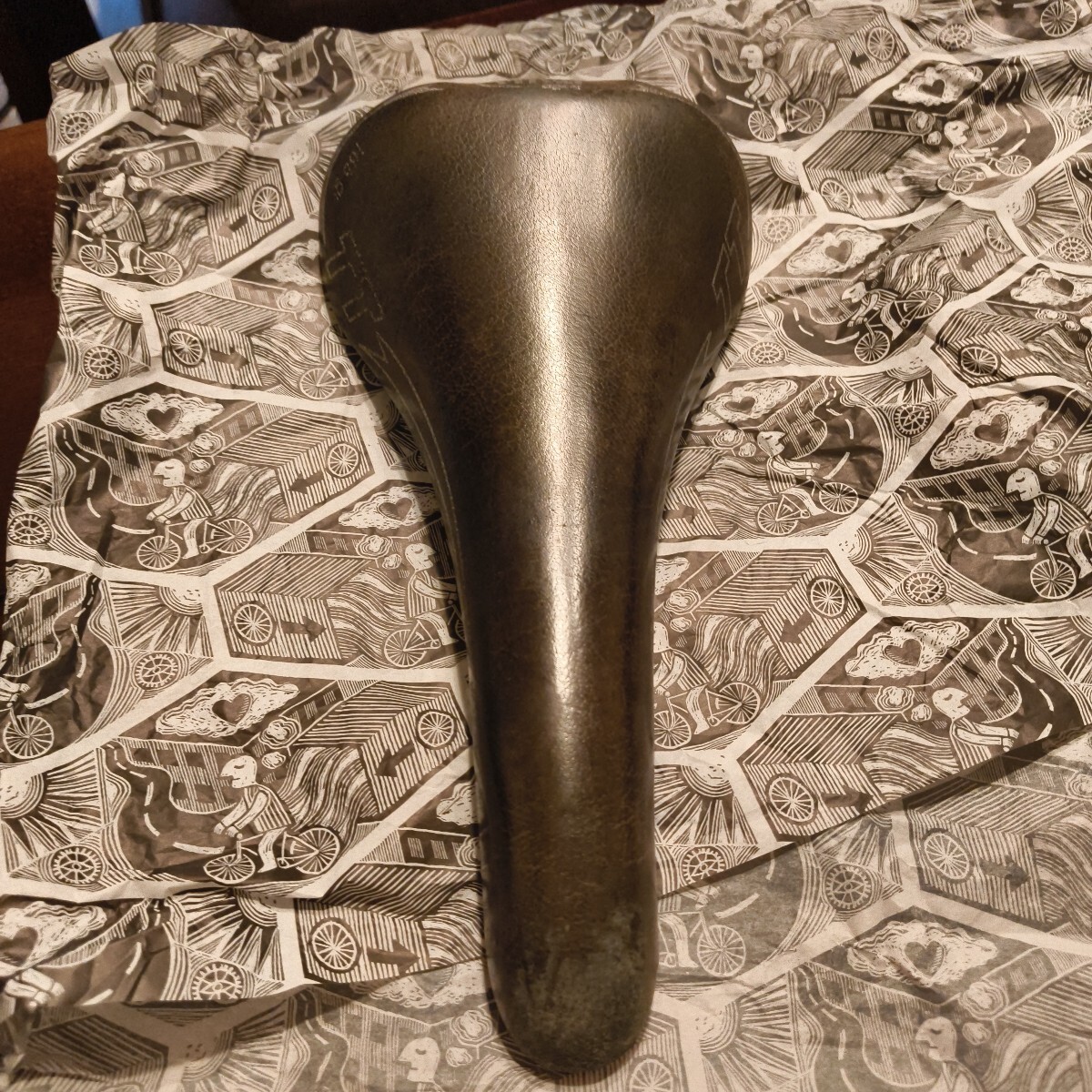 20年ぐらい前のセライタリア Fliteの軽量チタンモデルです。画像のとおり前方にスレありますが、全体的にはビンテージの風合いで格好良いです。通常使用に問題ありません。クロモリフレームなどにいかがでしょうか。
