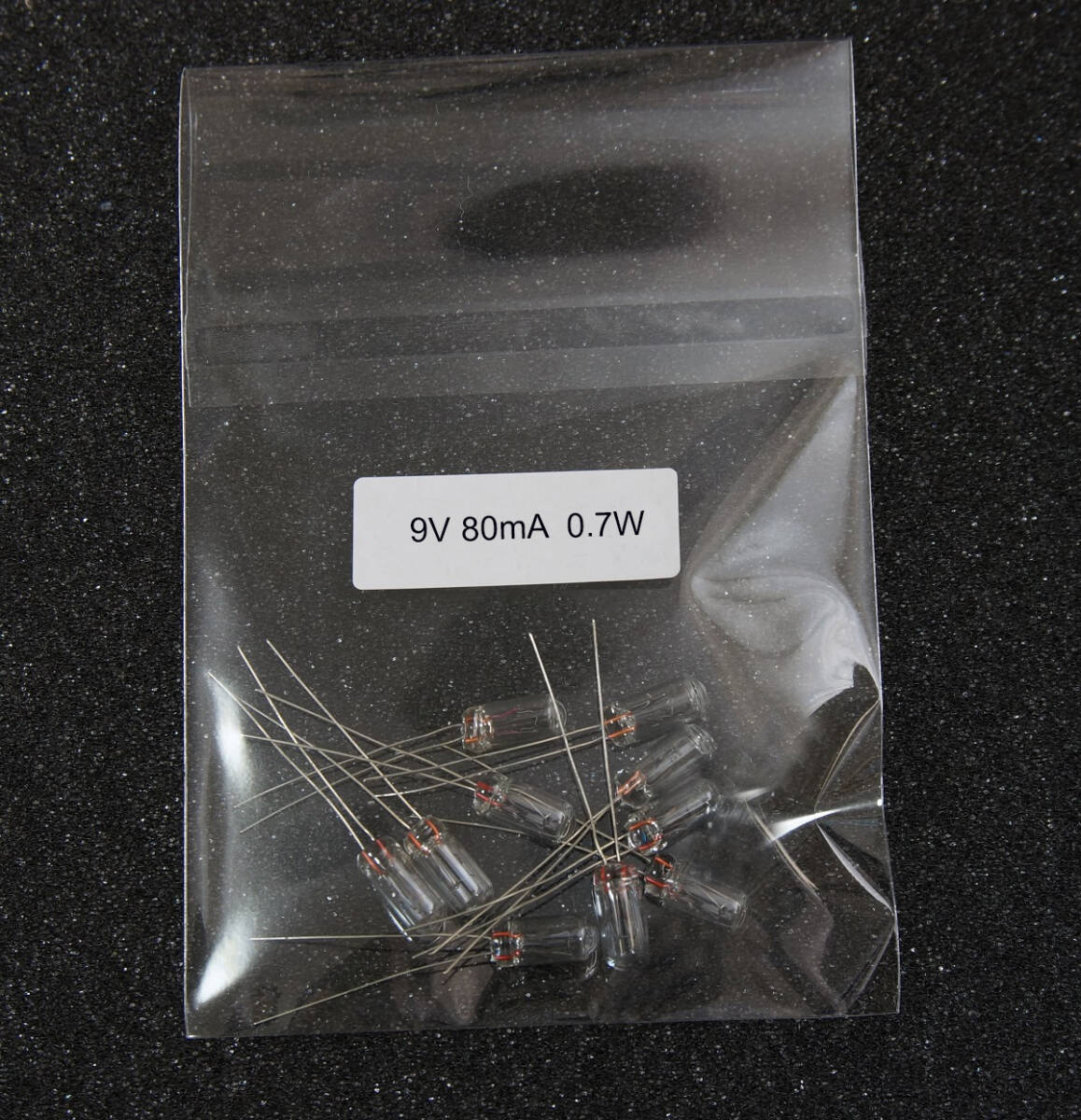 新品 電球 9V 80mA 0.7W 直径 3mm 10個セット     オーディオ・VUメータ・アンプ・無線機用のフィラメントランプ セットです。動作チェック済み。交流・直流 使用可能です。アンティークな雰囲気を醸し出す、パネルメーター、アナログアンプ等のVUメーターのバックライトに使われる白熱電球です。LEDでは出せない淡い光を演出。独特の雰囲気を演出します。10個のお値段です。必要セットは個数で選んで下さい。送料は同じ180円です。