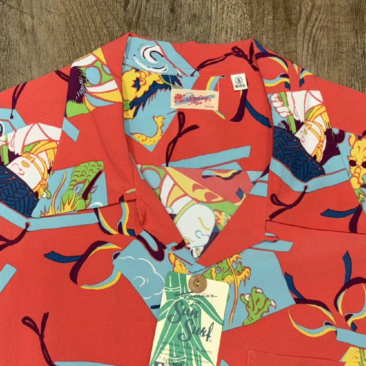 サンサーフ 和柄 アロハシャツ カブキ 歌舞伎 KABUKI 隈取 絵馬 アメカジ ハワイアン SS38036 165)レッド S トップス