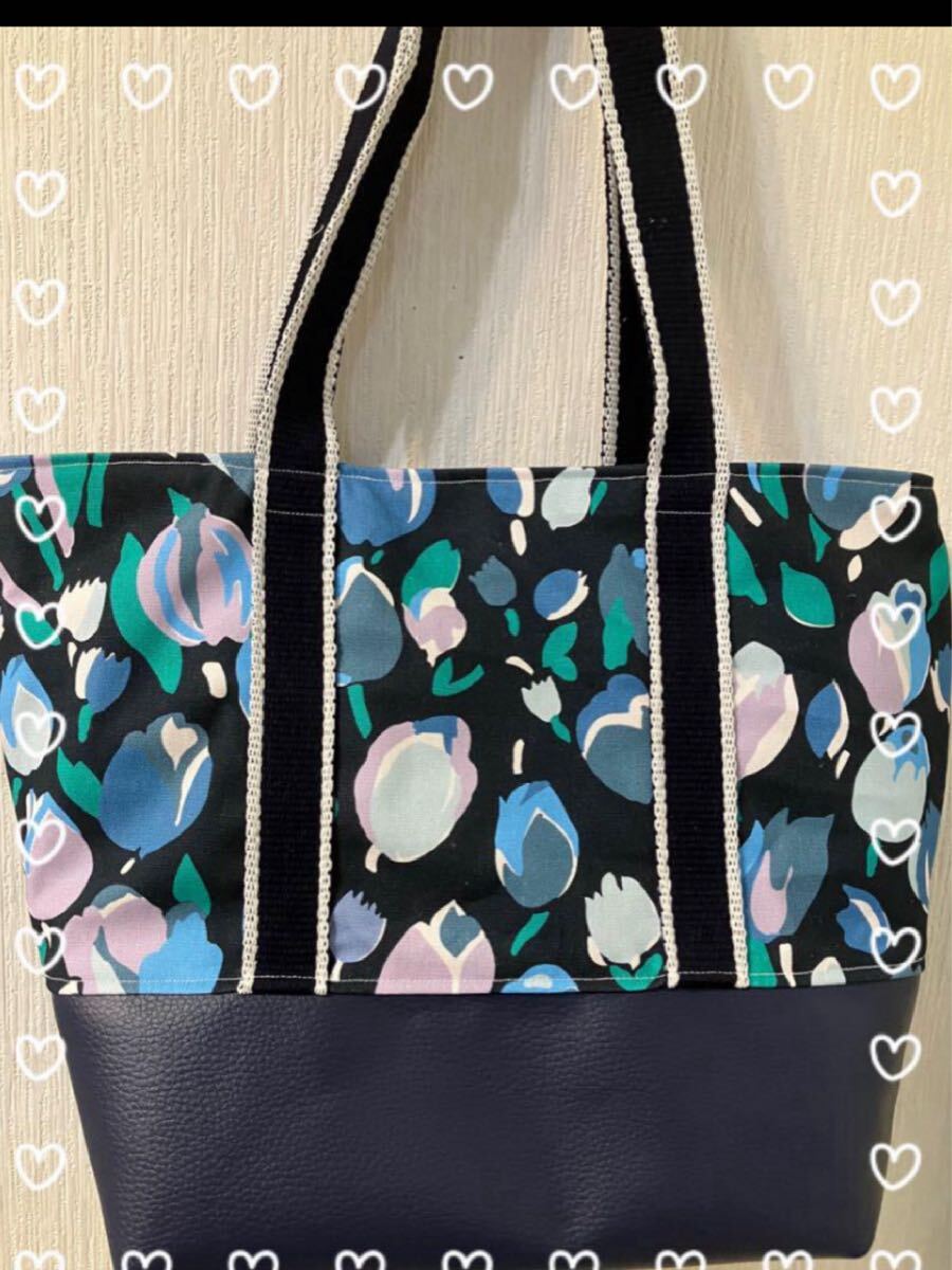 こちらは、リバティタナローン チューリップブーケ生地を使って制作したハンドメイドのトートバッグです。