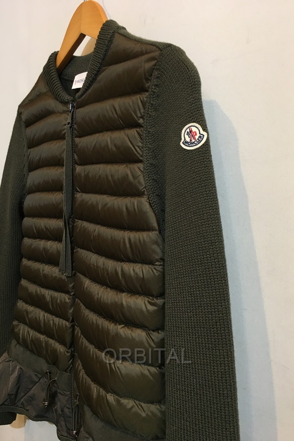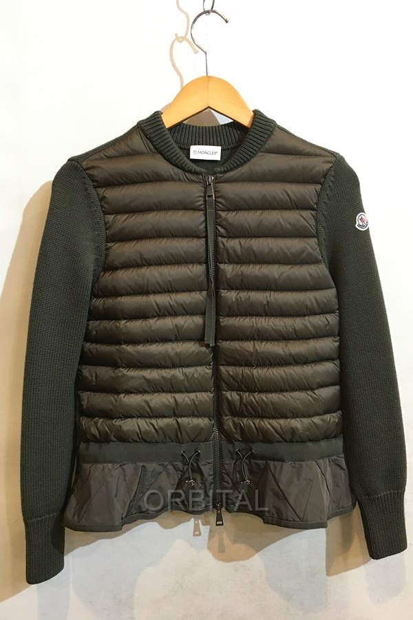 二子玉)MONCLER モンクレール MAGLIONE TRICOT CARDIGAN ニット切替ダウンカーディガン ダウンジャケット カーキ レディース S