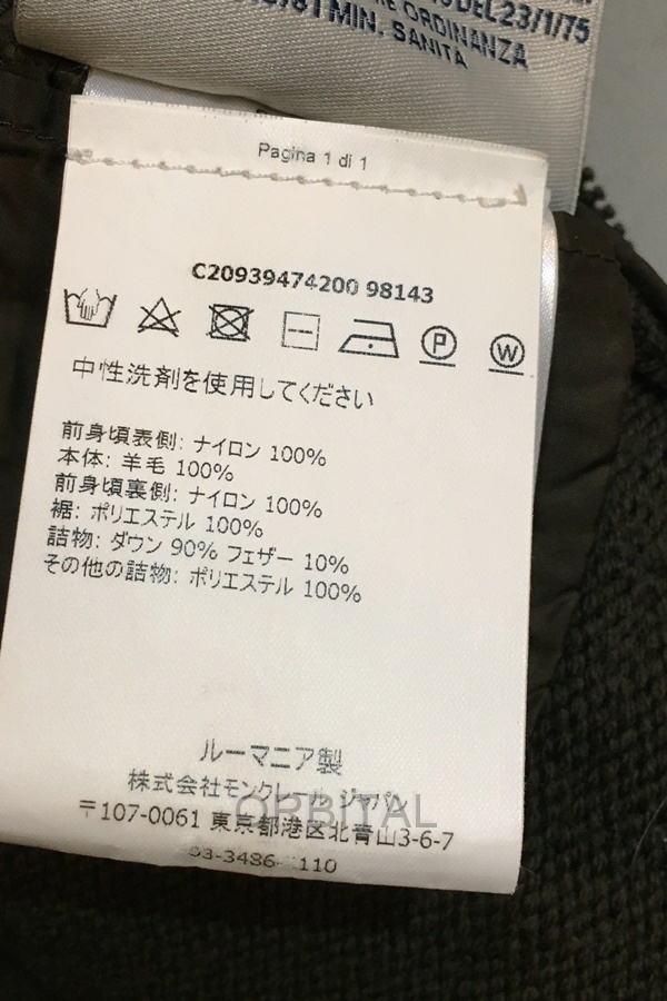 ナイロン100%ウール100%(中綿:ダウン90%フェザー10%)