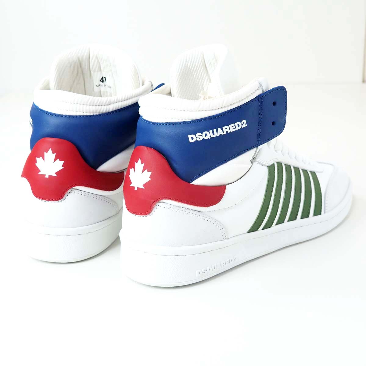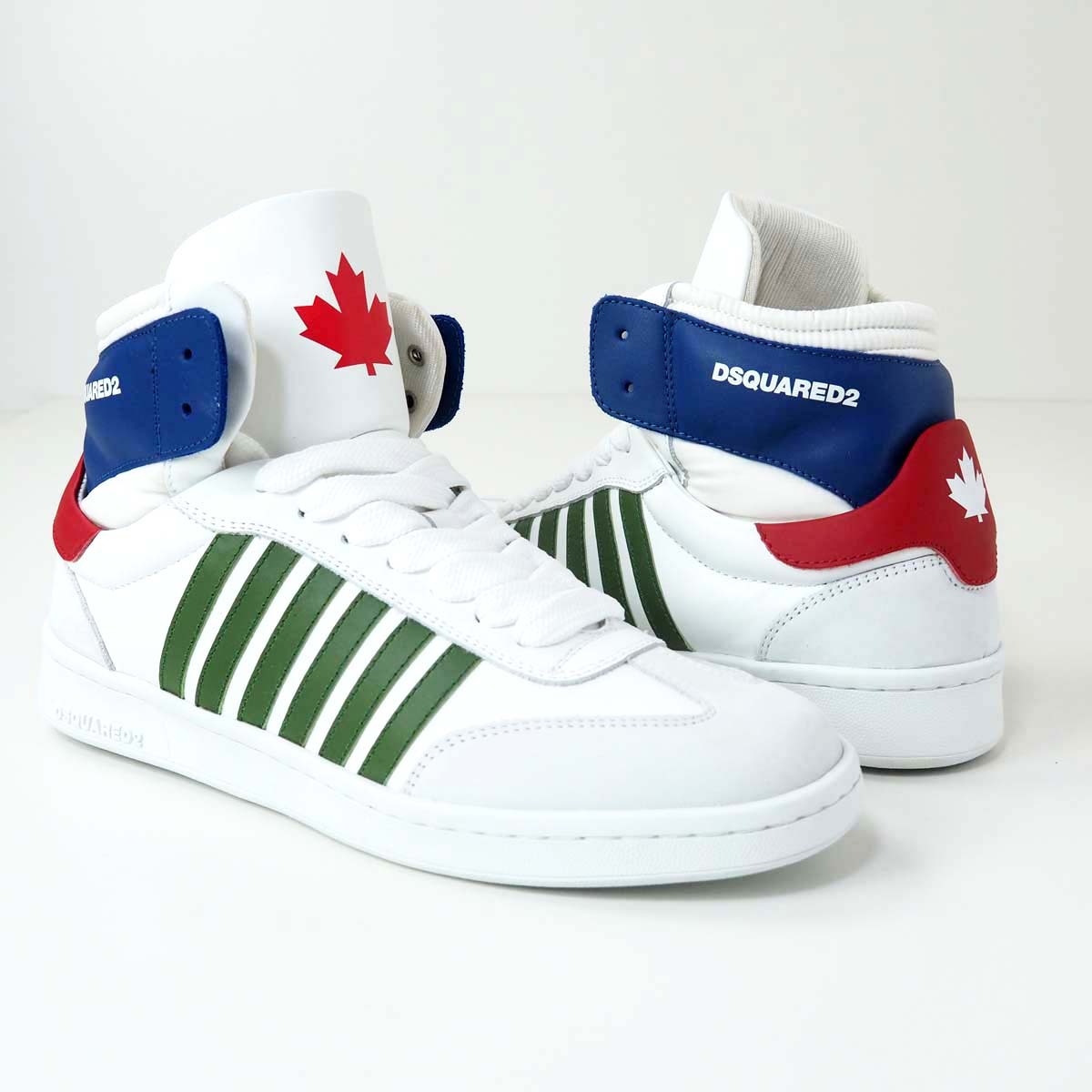 新品正規品 DSQUARED2 ディースクエアード ストライプ レザー ハイカット スニーカー EU41 JP26