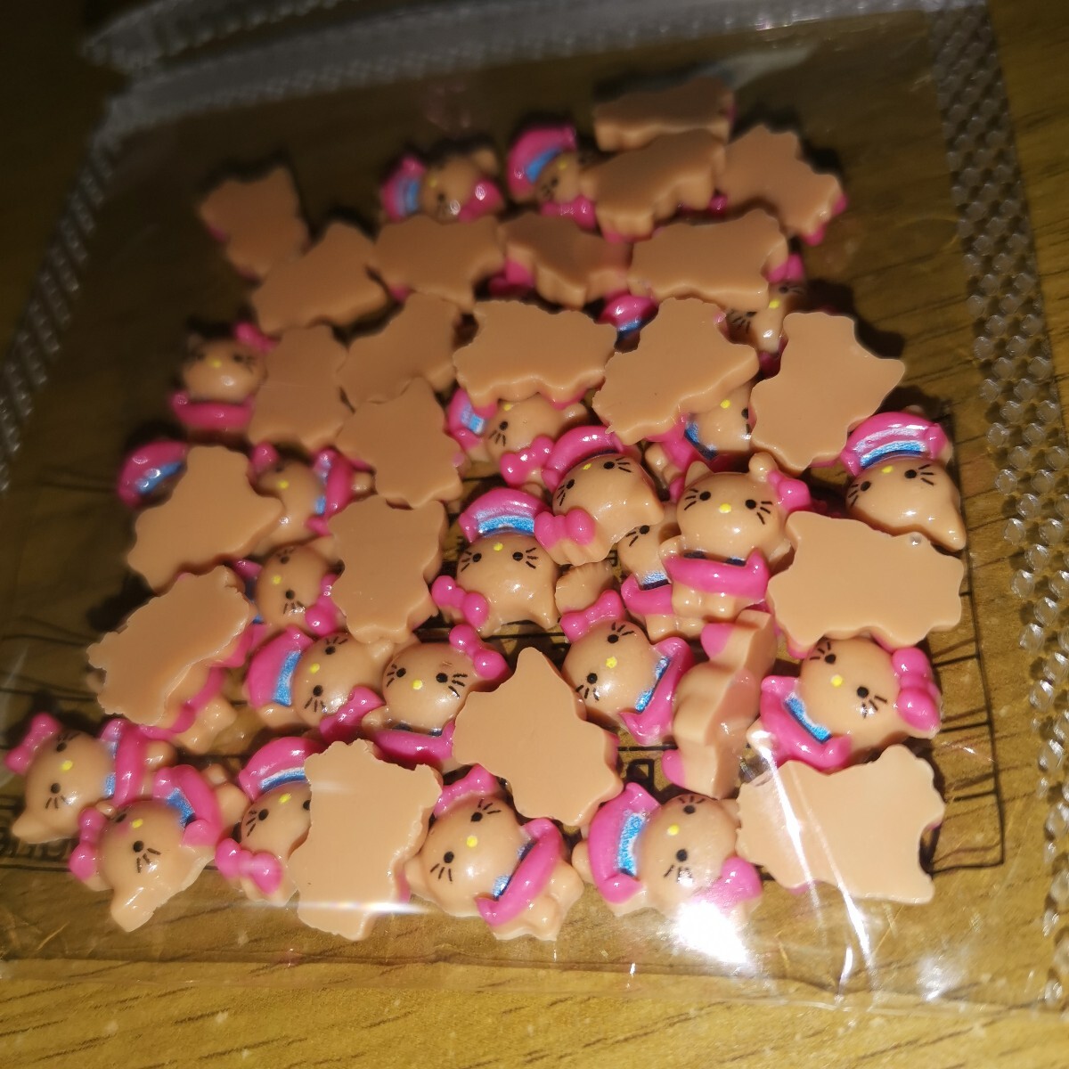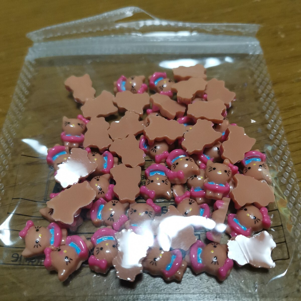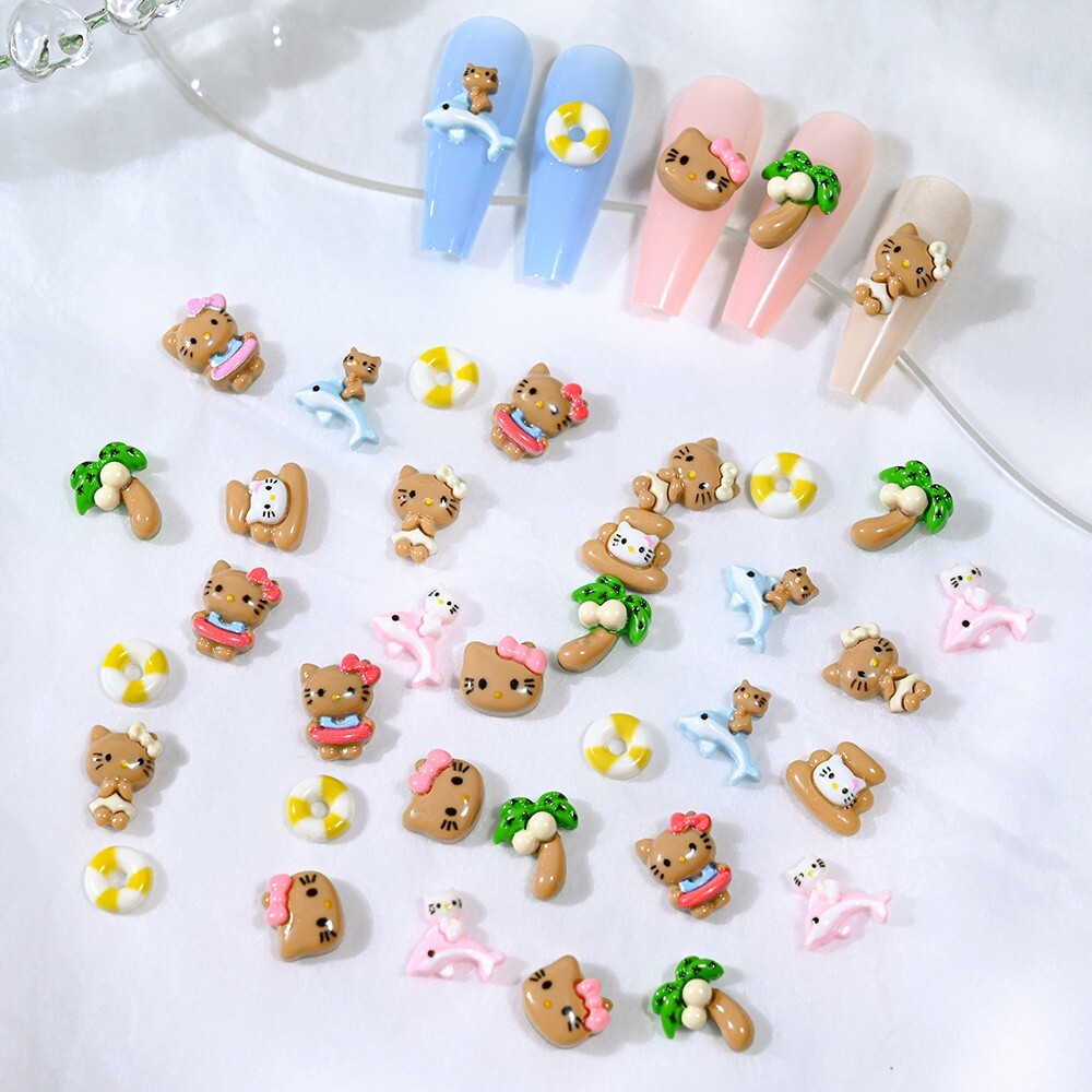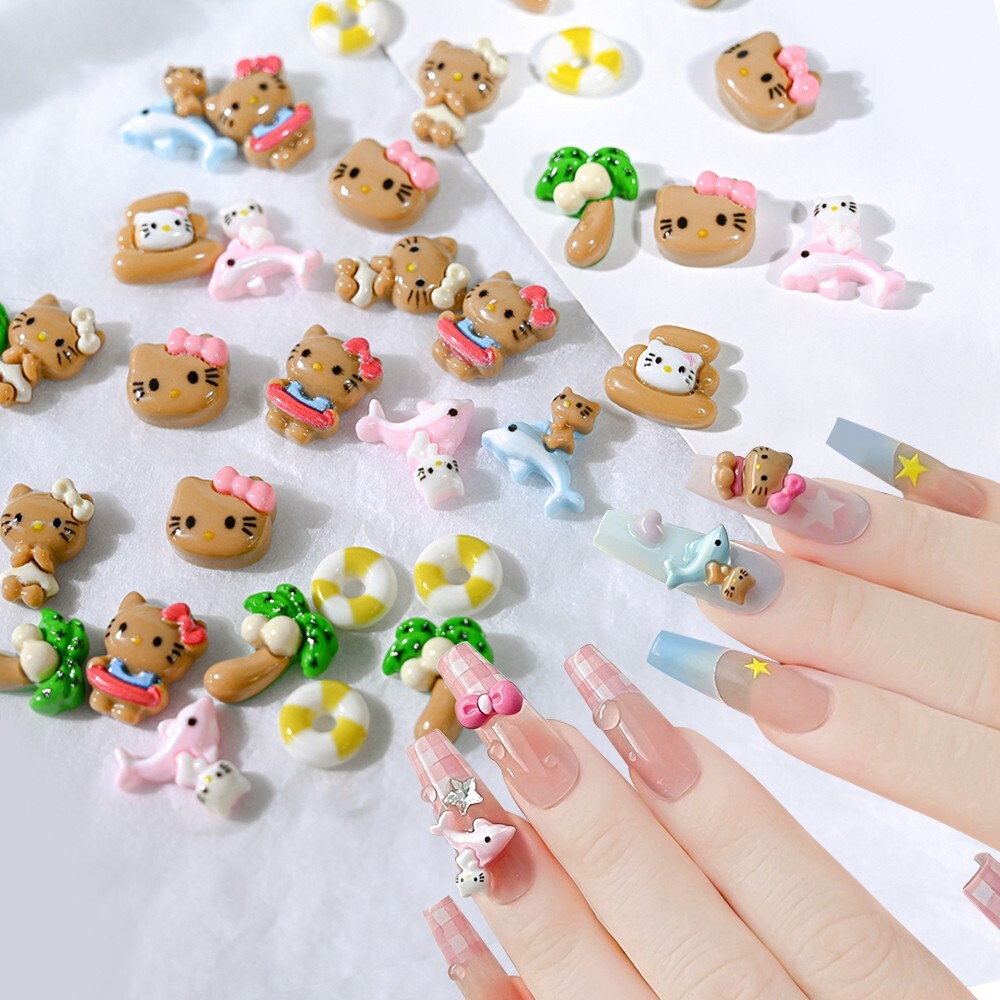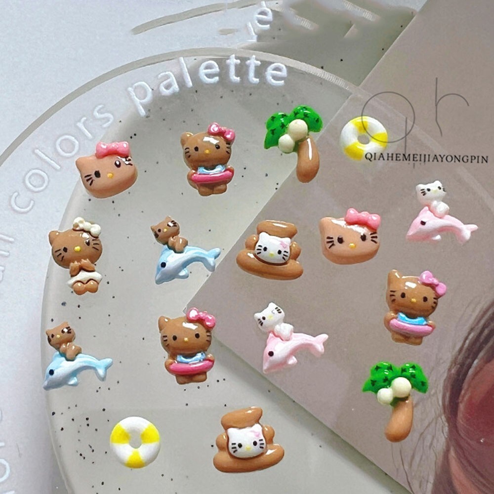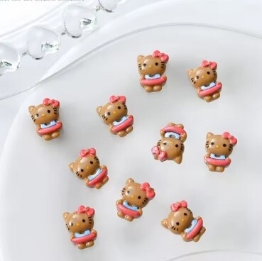 小麦肌キティちゃん ネイルパーツ 50個セット 日焼けキティ 濃いピンク 浮き輪 水着 ハローキティ デコパーツ デコレーション