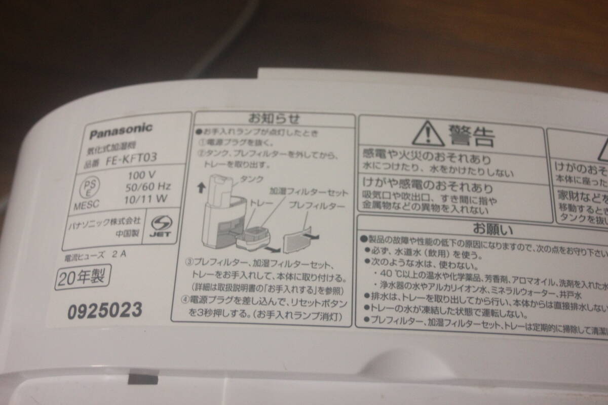 パナソニック 気化式加湿器 FE-KFT03-W ホワイト の出品です。ユーズドになります。