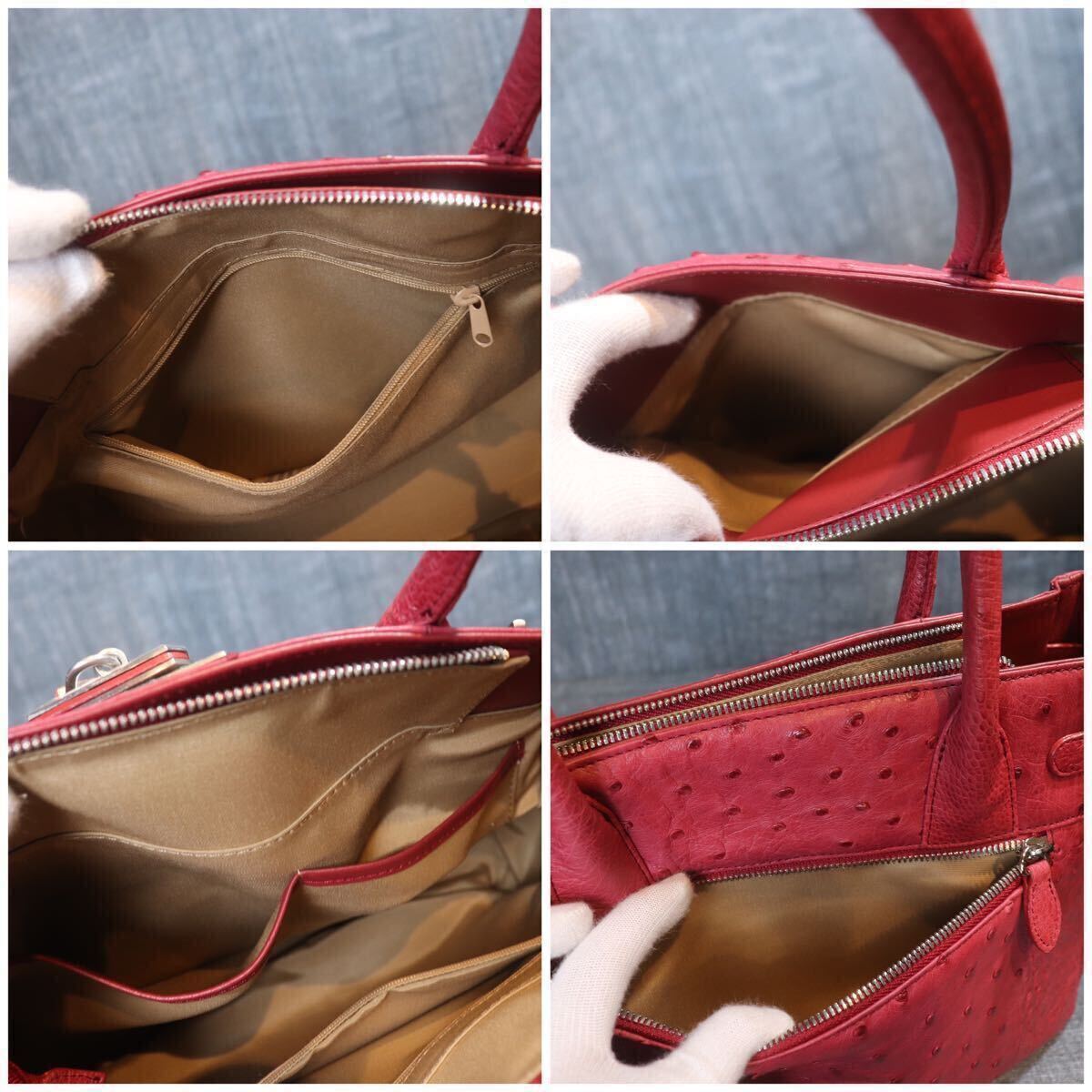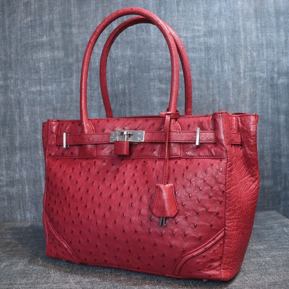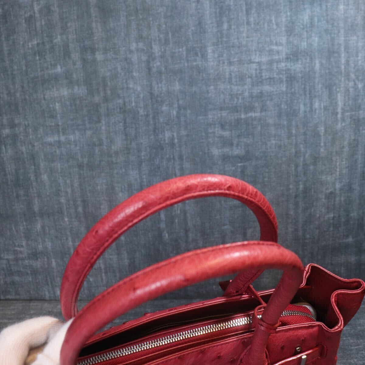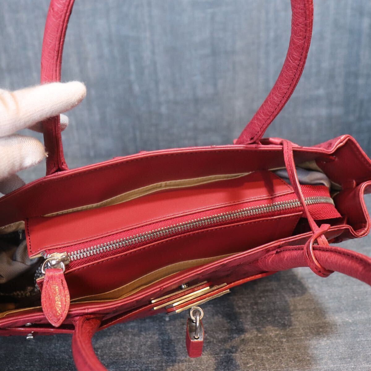 1円スタート オーストリッチ カデナ 南京錠 クロシェット レッド ハンドバッグ ダチョウ genuine ostrich 駝鳥 エキゾチックレザー 1スタ