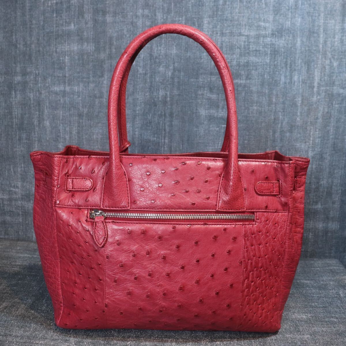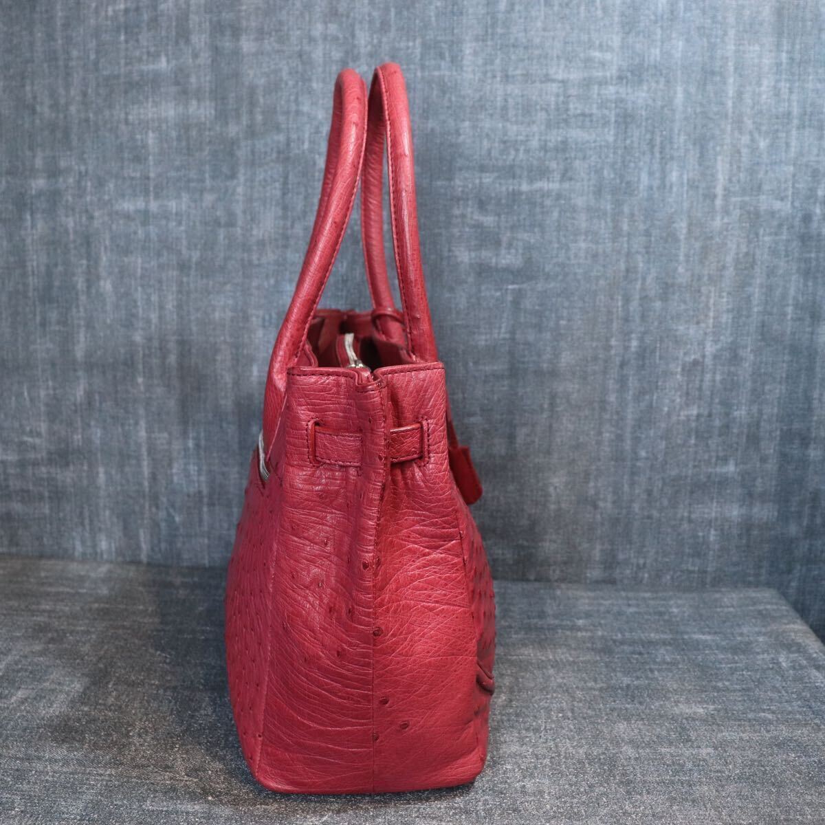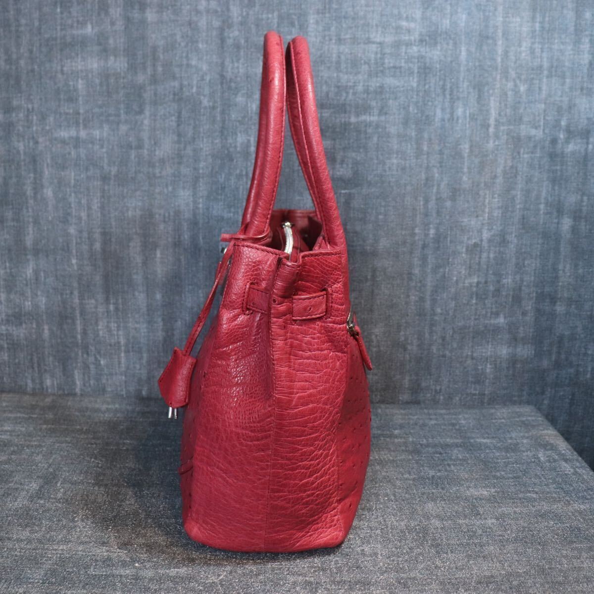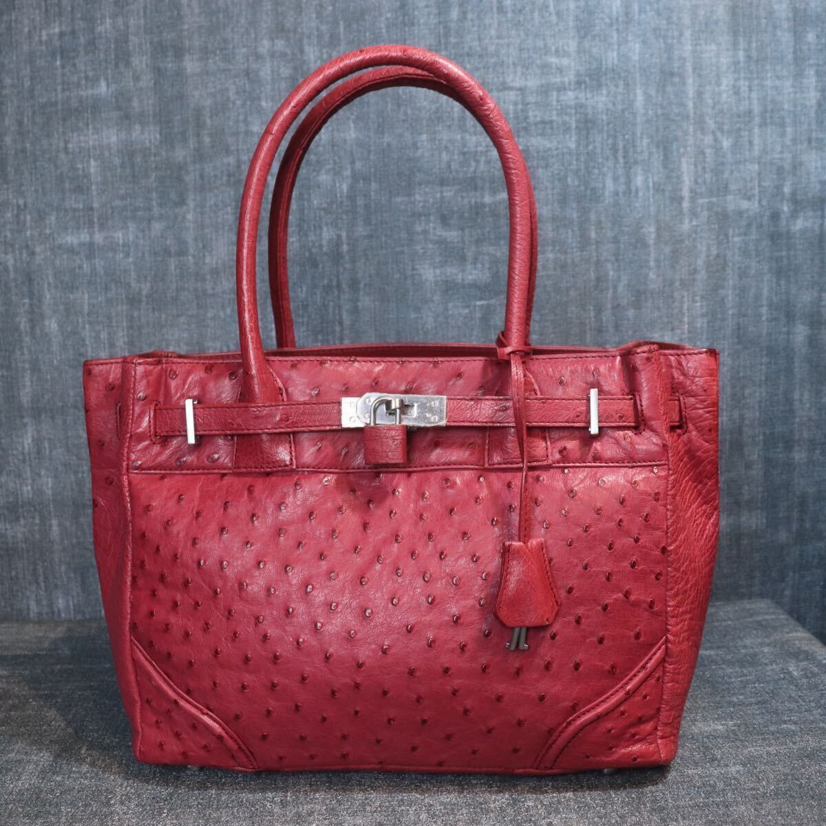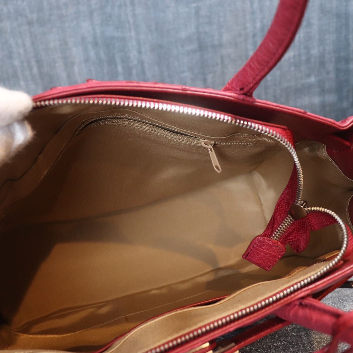 1円スタート オーストリッチ カデナ 南京錠 クロシェット レッド ハンドバッグ ダチョウ genuine ostrich 駝鳥 エキゾチックレザー 1スタ