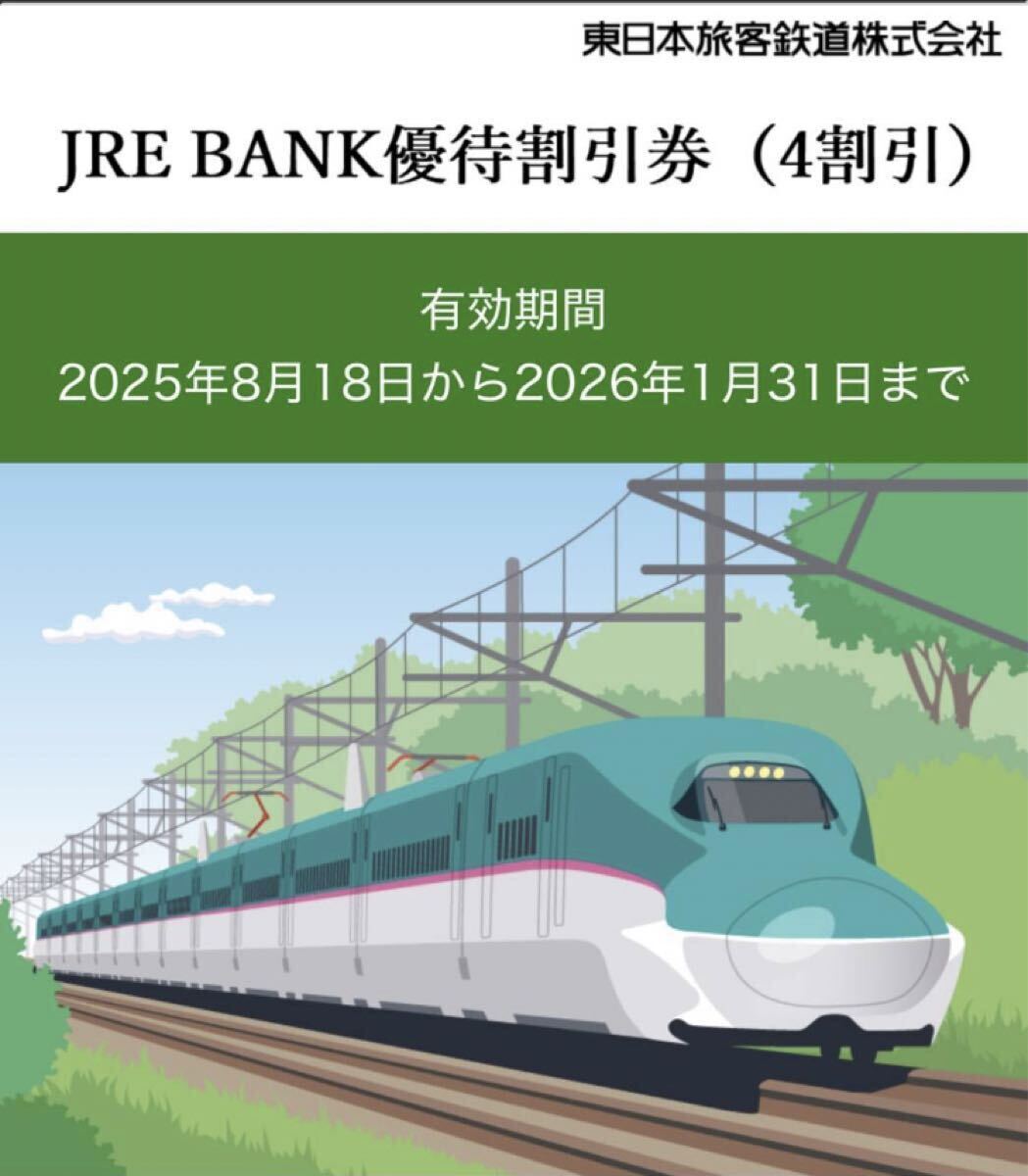 ※利用方法の詳細については、えきねっとウェブサイトの「株主/JRE BANK優待割引券をご利用の場合」をご確認ください。