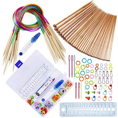 Dennty 棒針セット 編み物 工具 編み棒セット 編み物 初心者 キット かぎ針 編み針 輪針 とじ針 段数マーカー 目数段数計 巻尺 収納