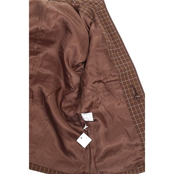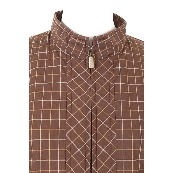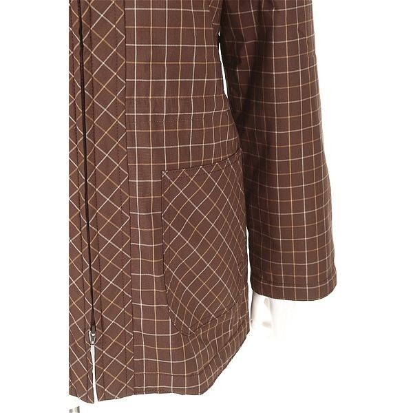 A5654/極美品 秋冬 Leilian レリアン チェック コットン 中綿 ジップアップ マオカラー ハーフ コート ブルゾン ジャケット11茶/レディース