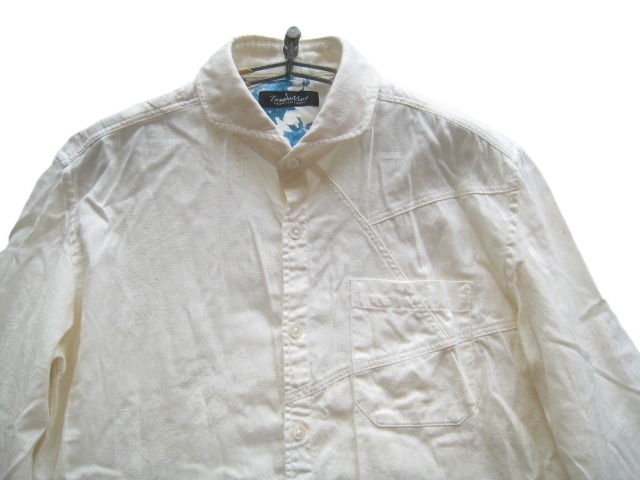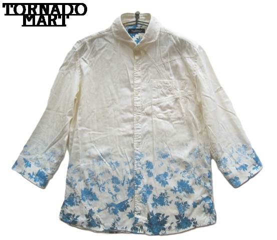 美品!!トルネードマート TornadoMart*ホリゾンタルカラー フラワープリント 7分袖シャツ LL 白 ホワイト