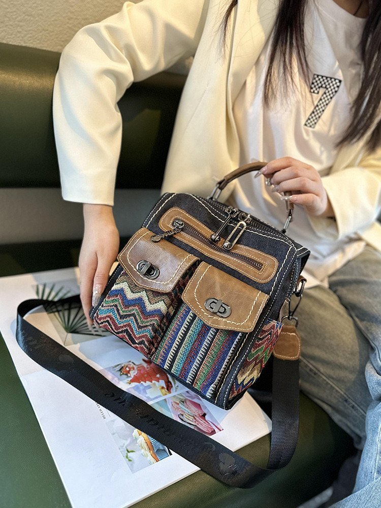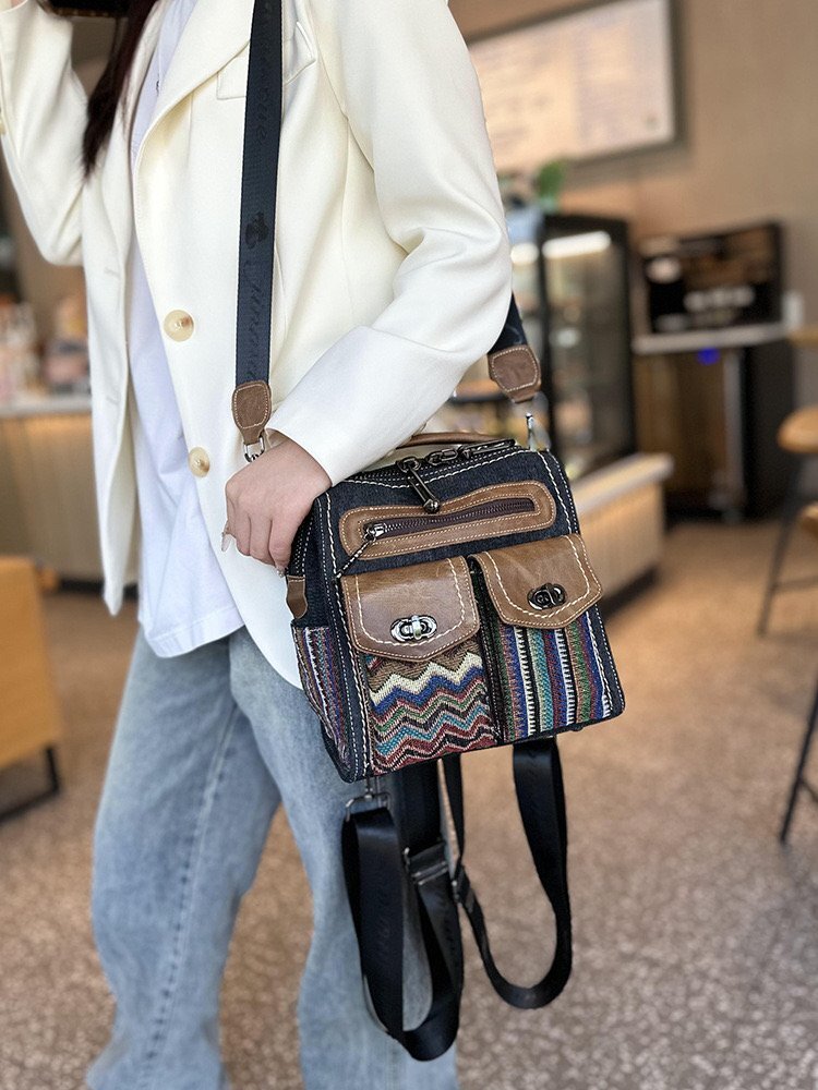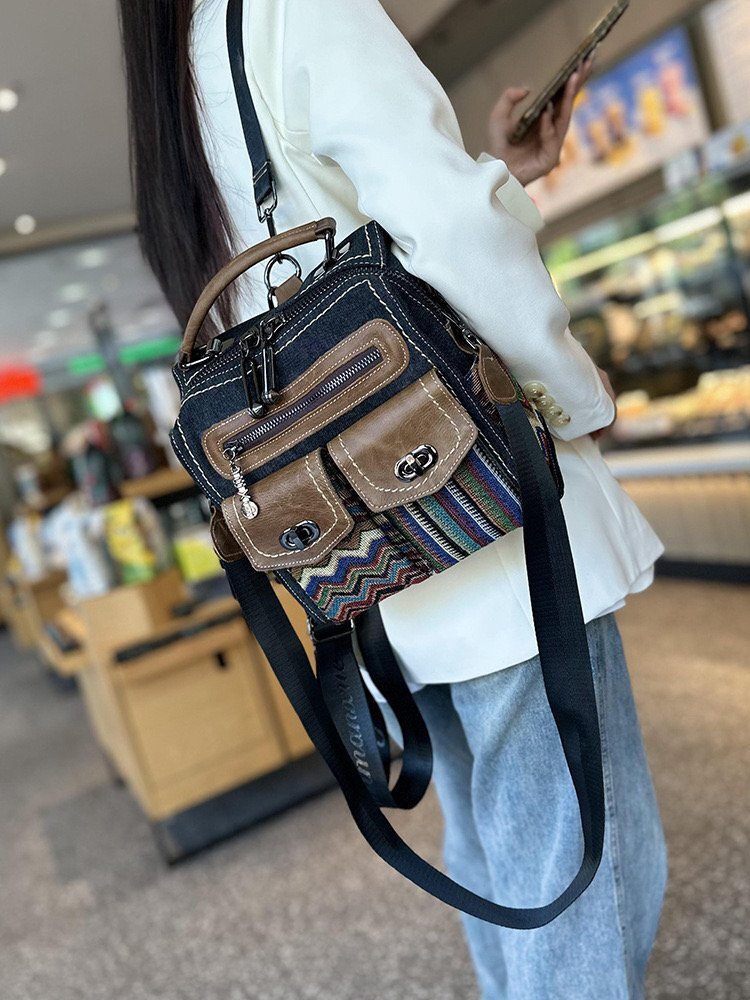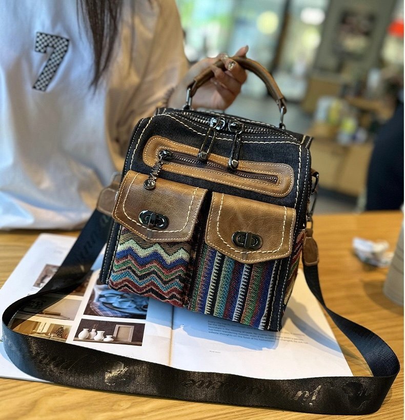 レディーハンドバッグ レトロエスニック 綺麗 牛革 デニム 斜め掛けデニムでワンショルダーバッグ lhw029