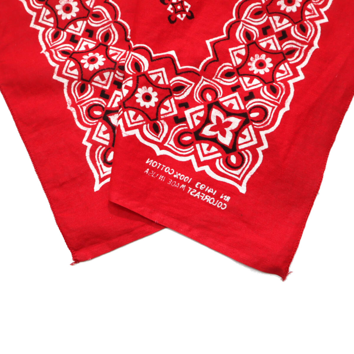 70s ビンテージ WAMCRAFT ワムクラフト 花柄 バンダナ USA製 赤 レッド COLORFAST RN14193 片耳 耳あり 古着 アメカジ 1970年代 ワーク 60s