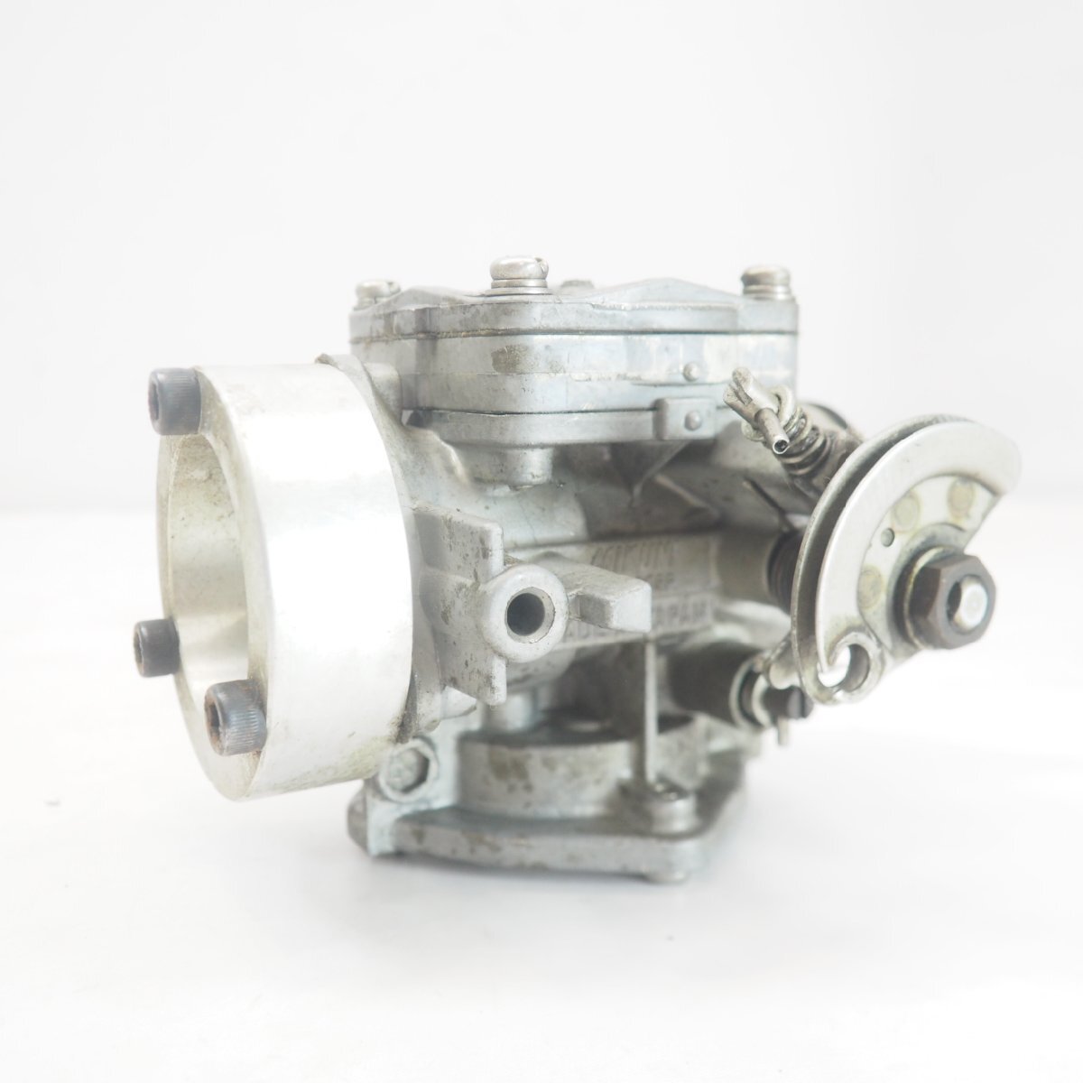 | 希少なミッションカート用のミクニ製キャブレター 一応ダイヤフラムの破れはなさそうでした ボディの割れもなく、バタフライバルブ可動OK 始動性は未チェックですが、ご確認後組み換え用や部品取り等にもお使いください インマニ側内径φ34mm 取り付け穴ピッチ約56mm程度 エアクリ側外径φ65mm |