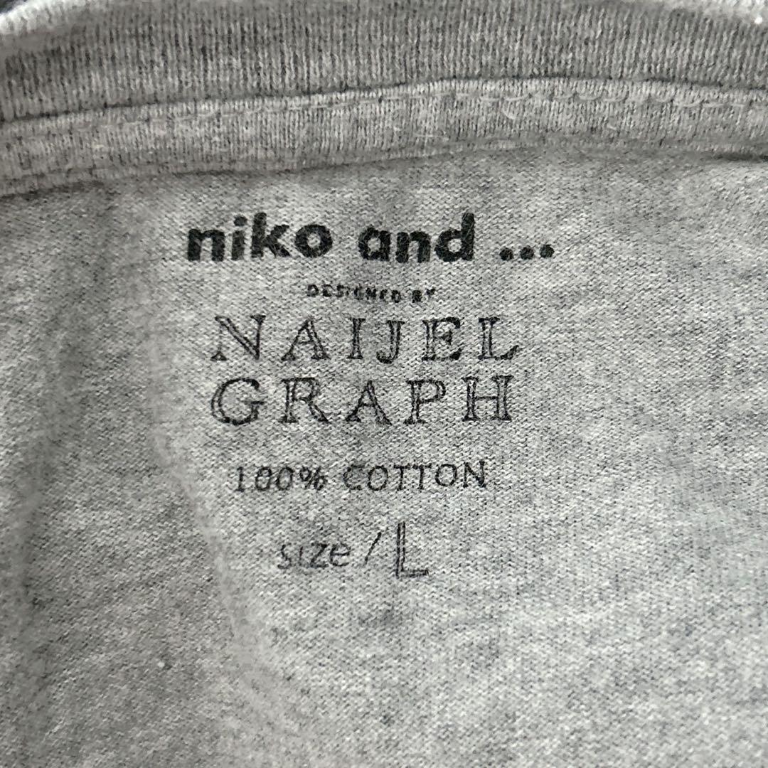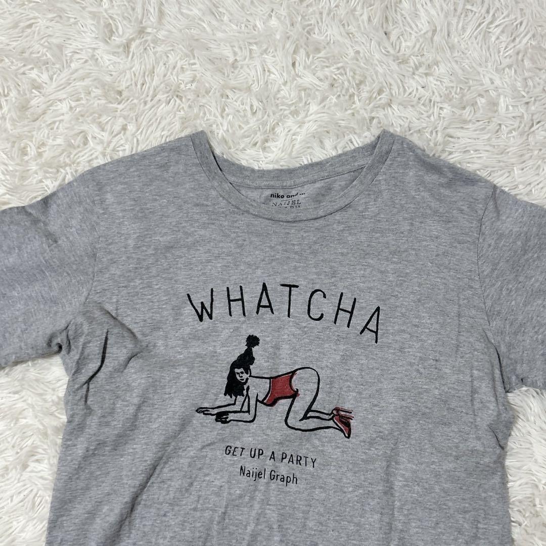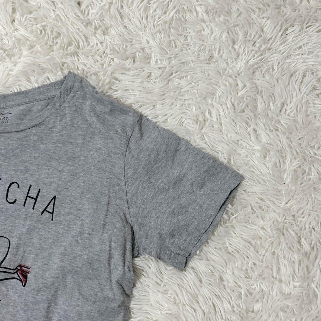 - デザイン: グレーの半袖Tシャツ、イラスト付き