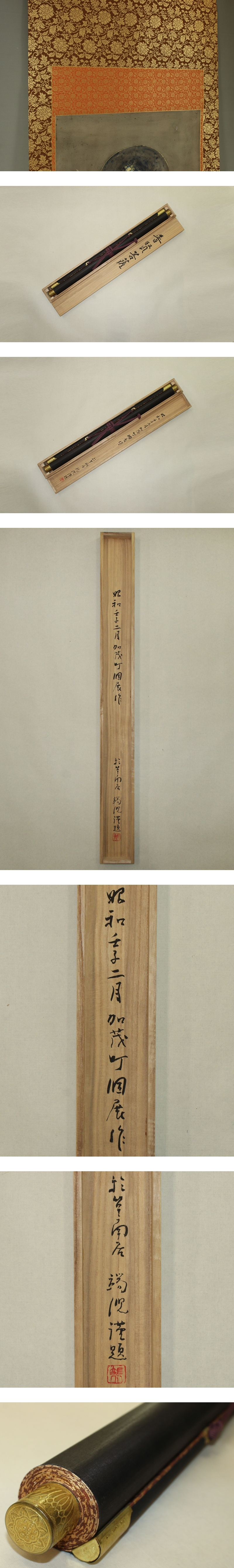 康端倪 こう-たんげい(1911-2001) 福島生。本名は小野塚幹雄、響于とも号した。 川端画学校・太平洋美術学校に学び、日展に参加。 のちに日本美術院(院展)を中心に活躍。主に仏画を多く手がける。 本紙は、染み、汚れがあります。 表装は、染み、汚れ、軽い皺、軸先に軽い汚れがあります。 【サイズ】 作品 横約51cm×縦約111cm 表装 横約66cm×縦約202cm |