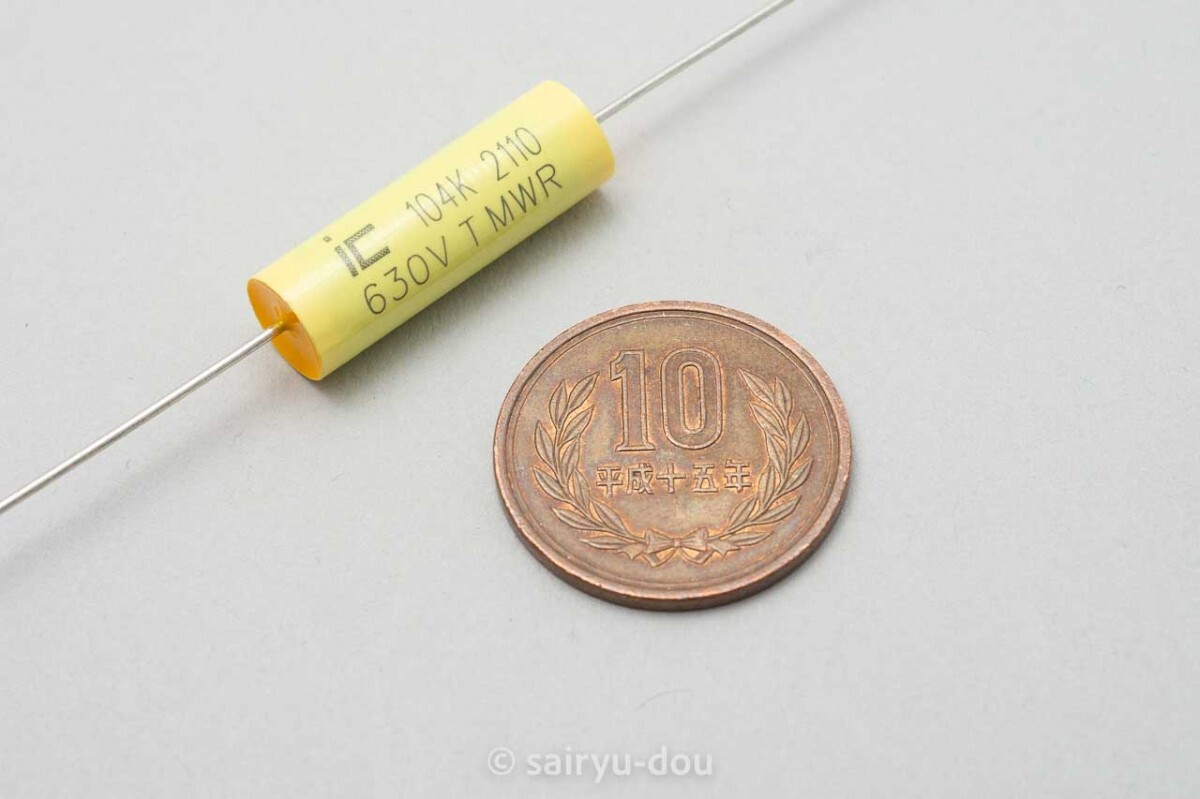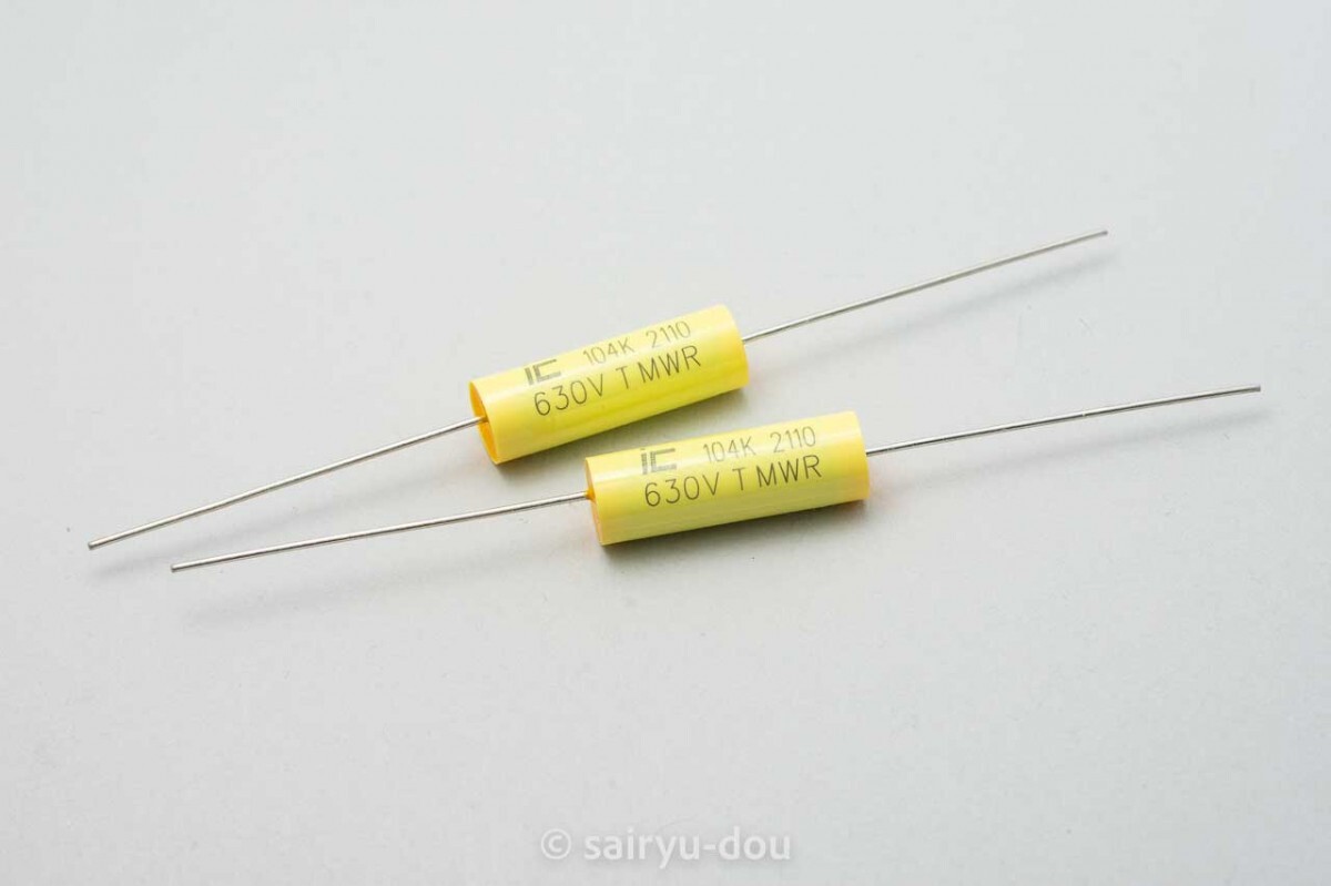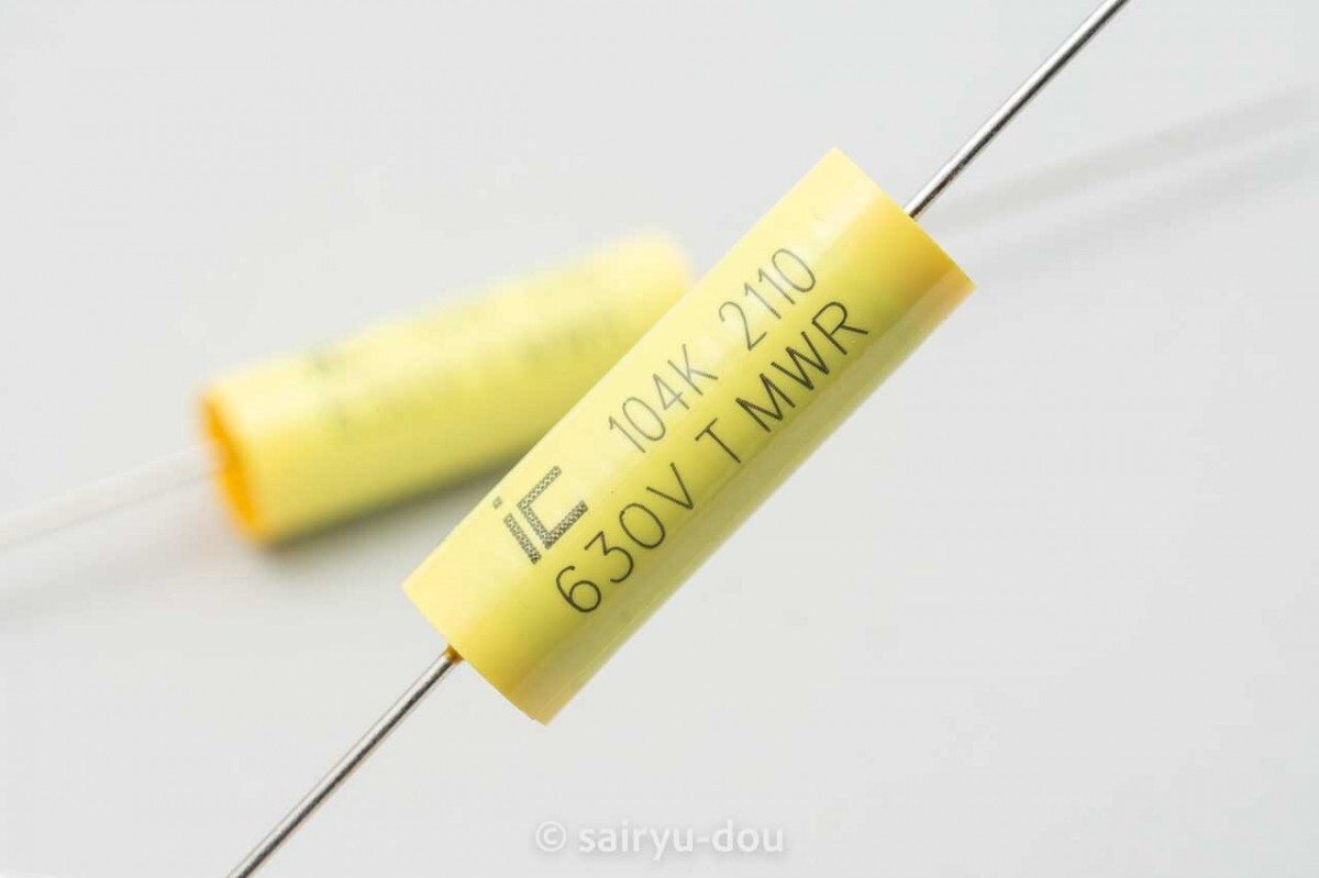 耐圧630VDCで、すこし大きめの容量で、チューブラ型で、比較的コンパクト、手頃な価格となると現行製品ではこれになります。海外のマニアの評価では、60年代のコンデンサーの「トーン出力」に近い温かみのあるサウンド、またはブライトなトーンが特徴のコンデンサーとの評があります