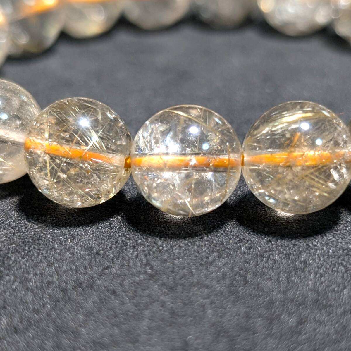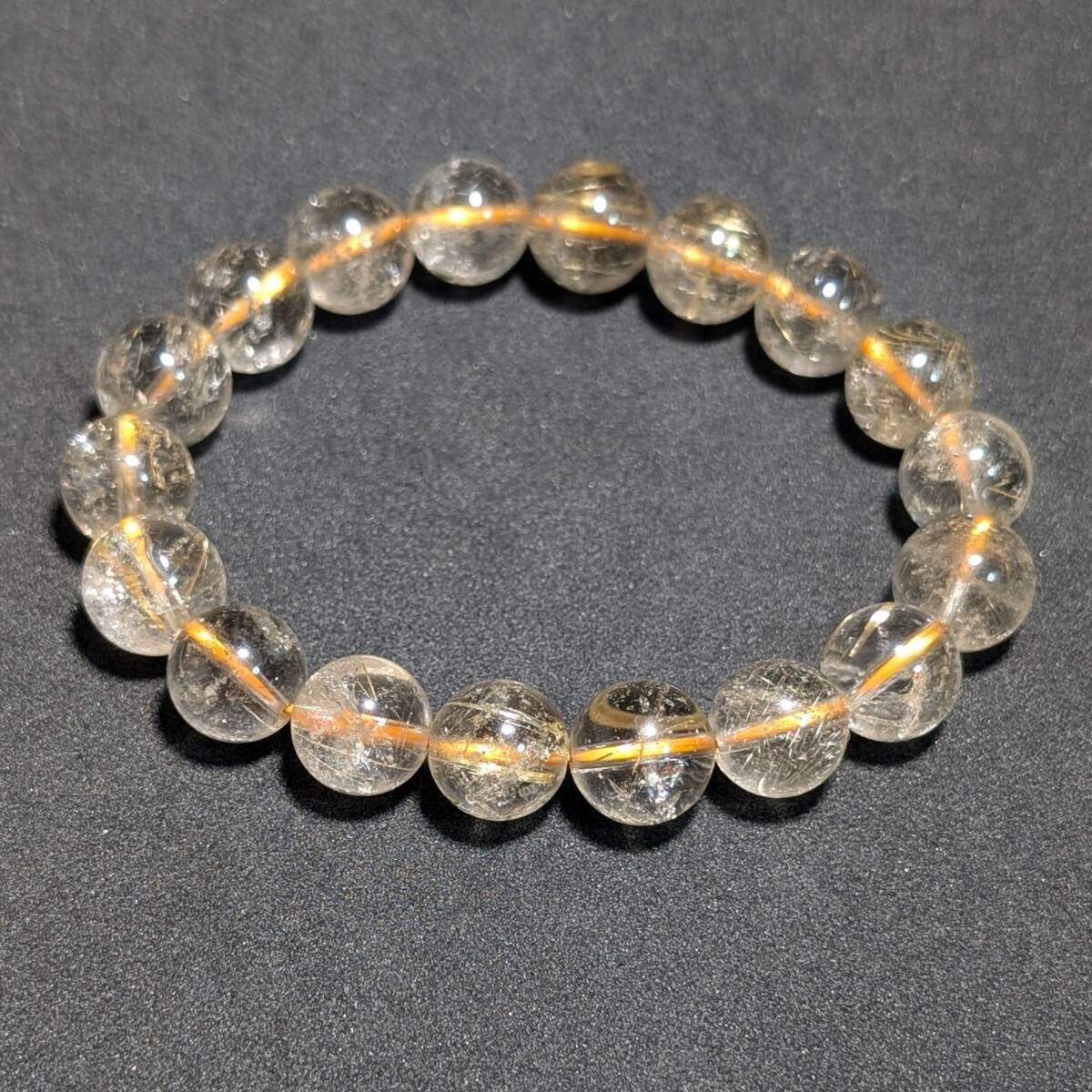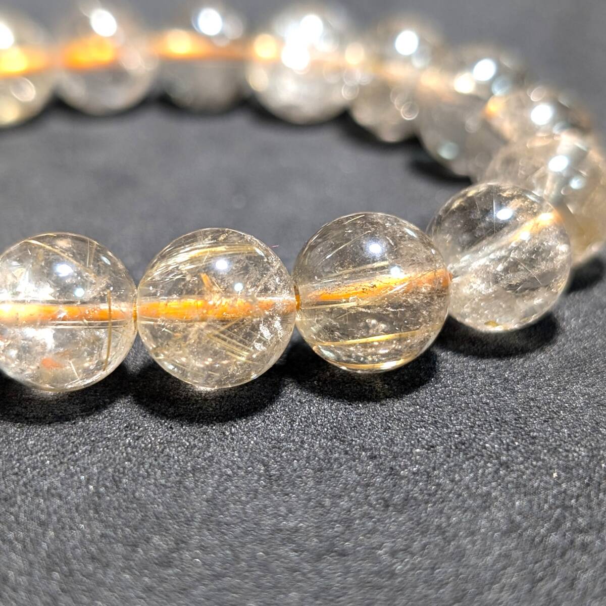 魅惑のオーラを放つ ゴールドルチル クォーツ ブレスレット 11ミリ 虹入り金針水晶 最強天然石 パワーストーン 金運 お守り効果 ギフト
