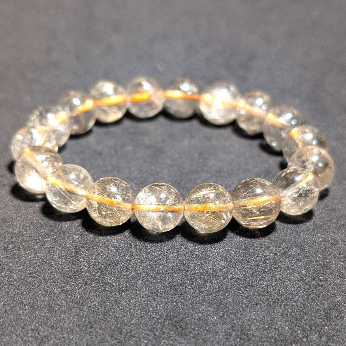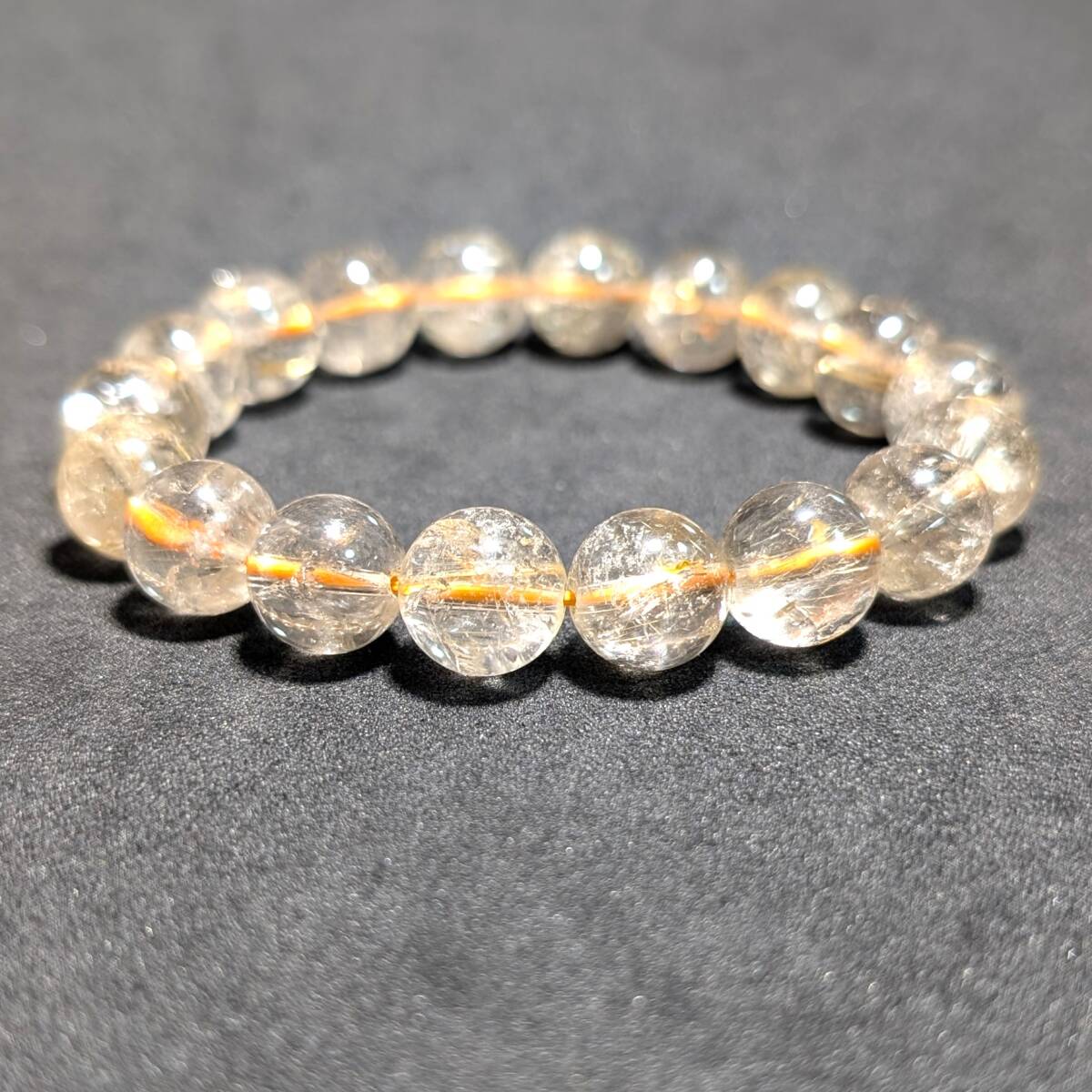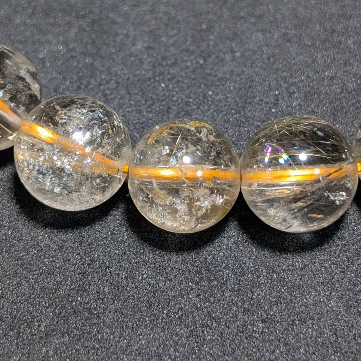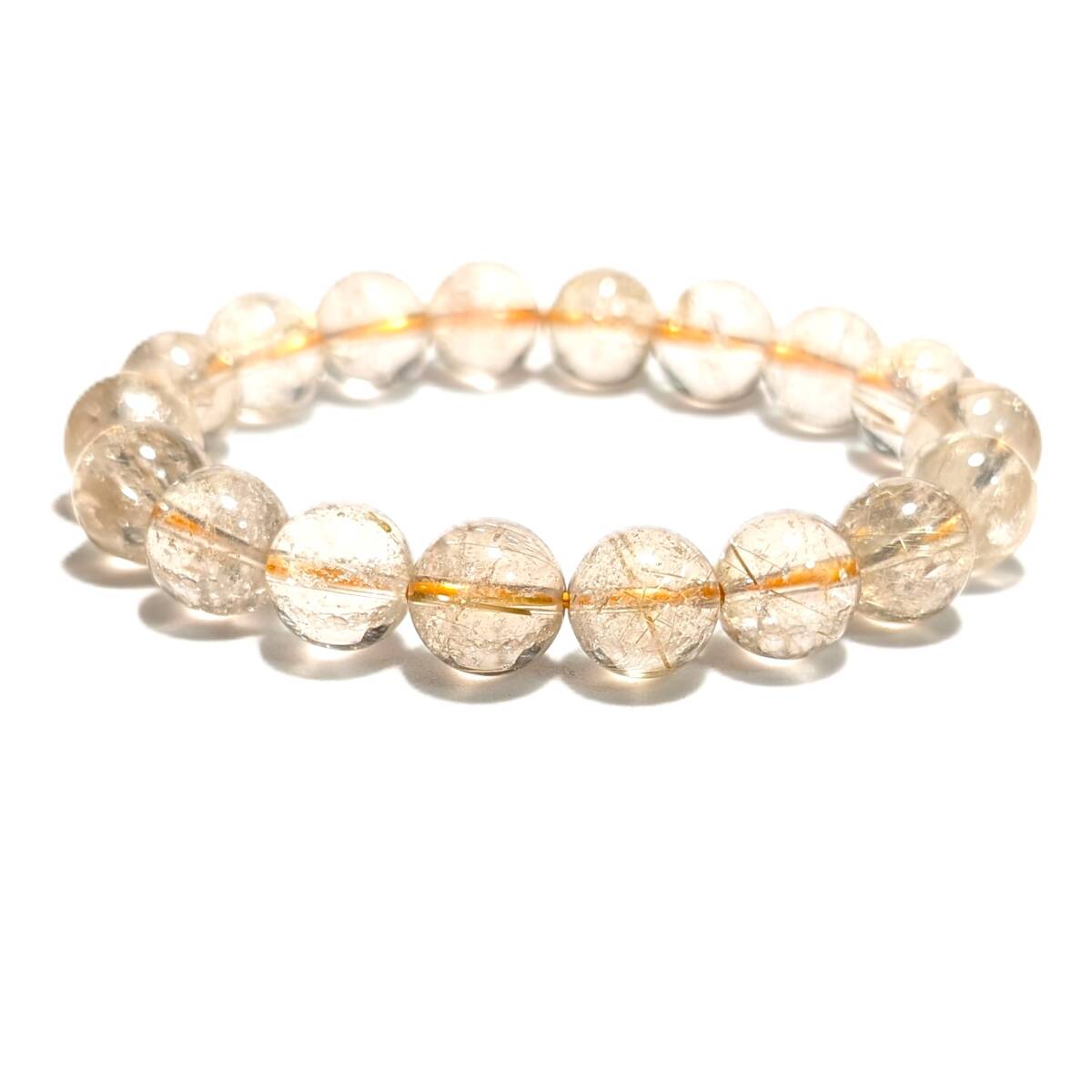 魅惑のオーラを放つ ゴールドルチル クォーツ ブレスレット 11ミリ 虹入り金針水晶 最強天然石 パワーストーン 金運 お守り効果 ギフト