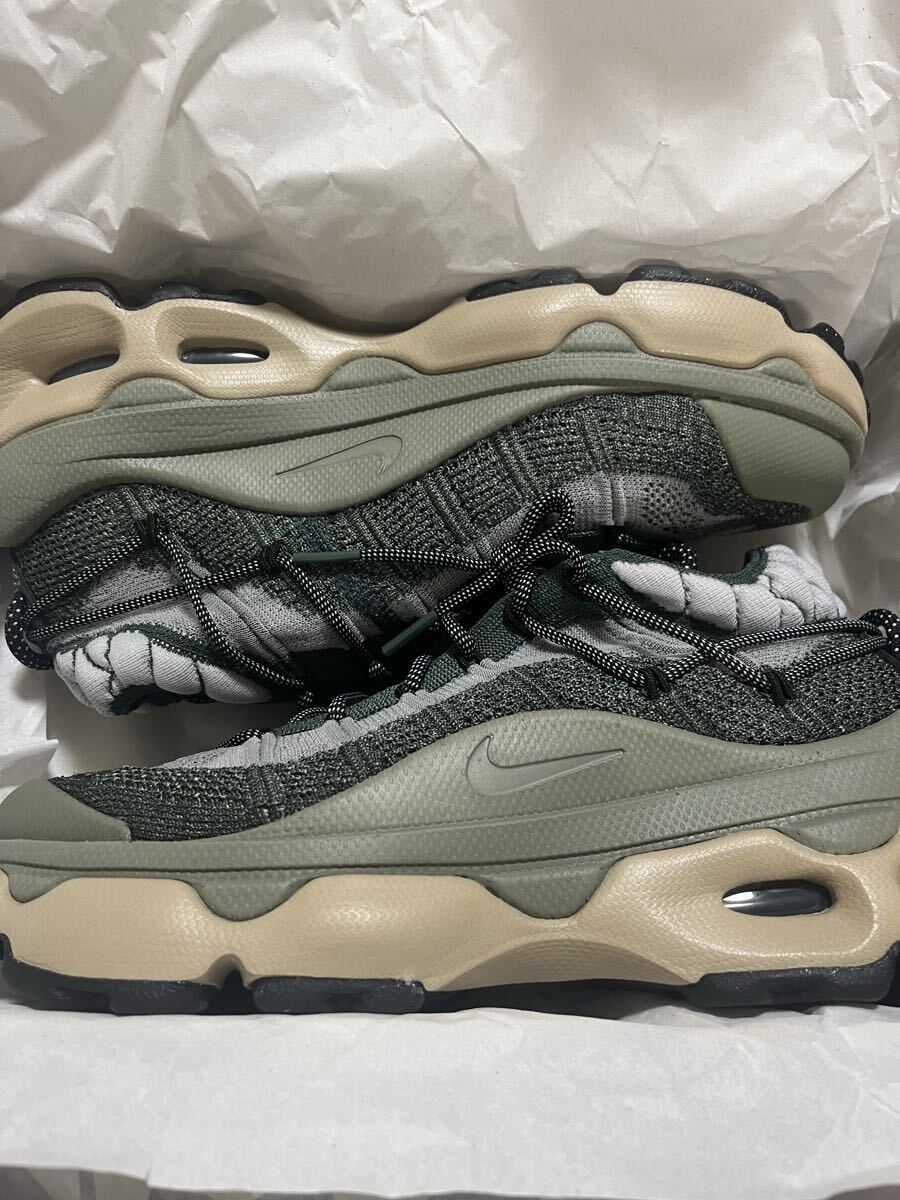 新品 国内正規品 nike air max flyknit ventureです。カラーはグリーン、サイズは26.5cmで、フィッティングはエアフォース1メンズ26.5センチ程度。定価26180円、ナイキオンライン購入、新品未使用。ボリューム感カッコよく、履き心地も良いです。既に完売しており探しても売ってませんのでこの機会にどうぞ。配送は定形外かゆうパック元払い。