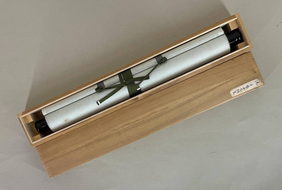 古い掛け軸は軸先を固定している接着剤が弱り、輸送途中の衝撃で軸先が外れてしまう場合がございます。