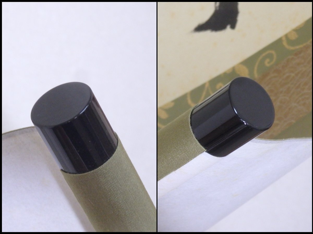 【管理番号5-0812112-6 スタッフコメント:iy】  さわやかな風が細長い竹を揺らす   ☆紙本、肉筆、風帯付き、軸先は塗り。細かいシミが多いですが、遠くからだとあまり目立ちません。共箱。