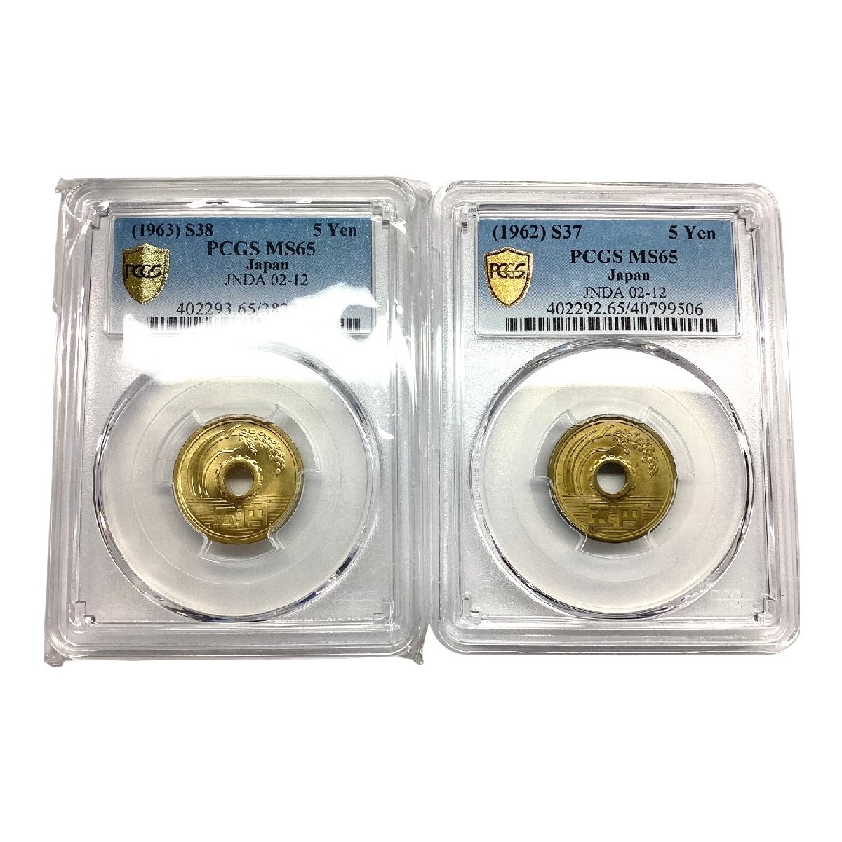 【作品名】 額面10円 5円 黄銅貨 昭和37年 1962年 昭和38年 1963年 PCGS スラブ入り