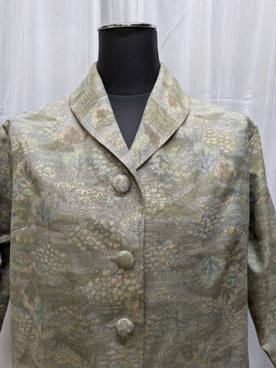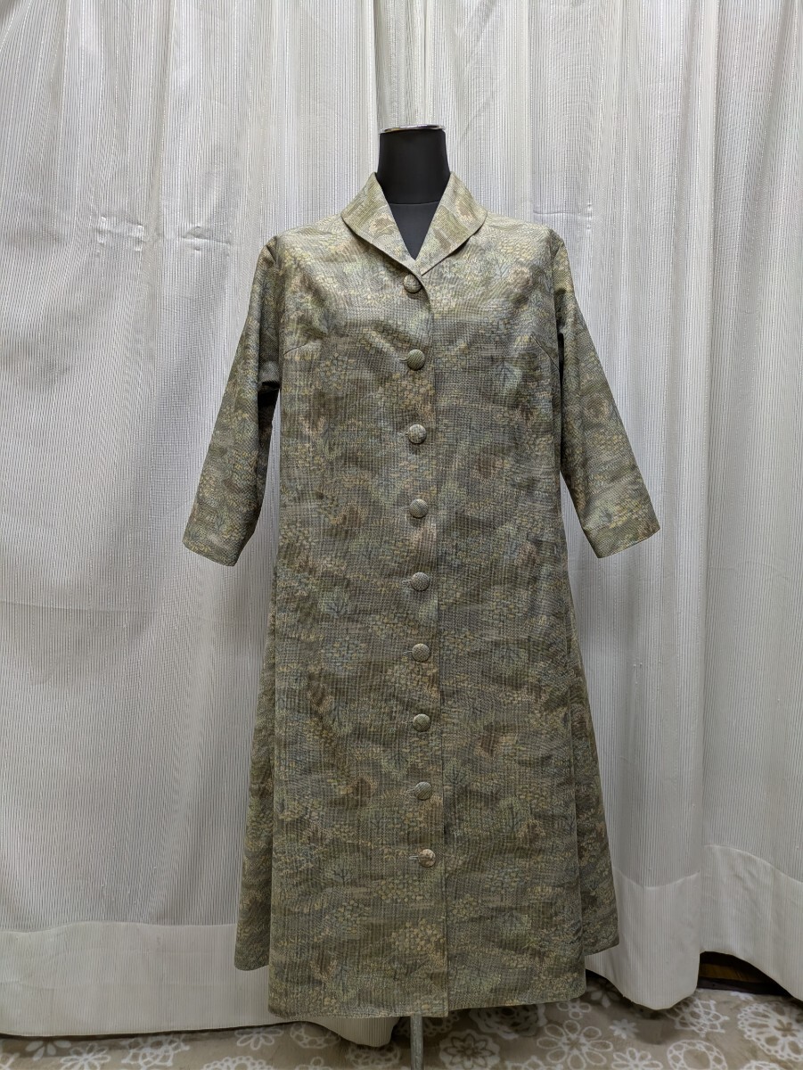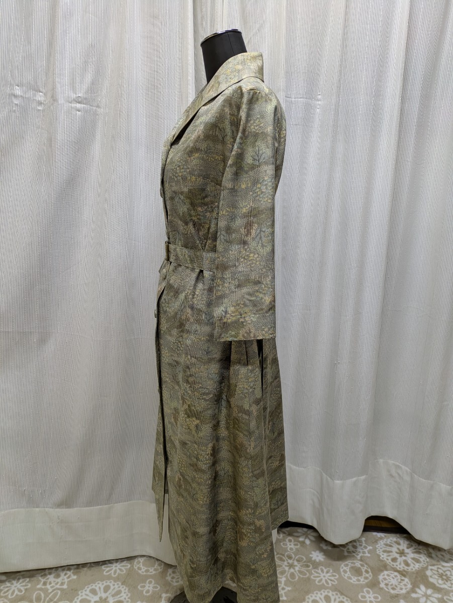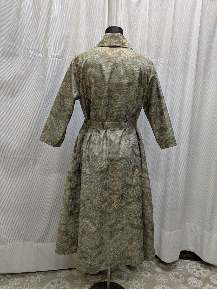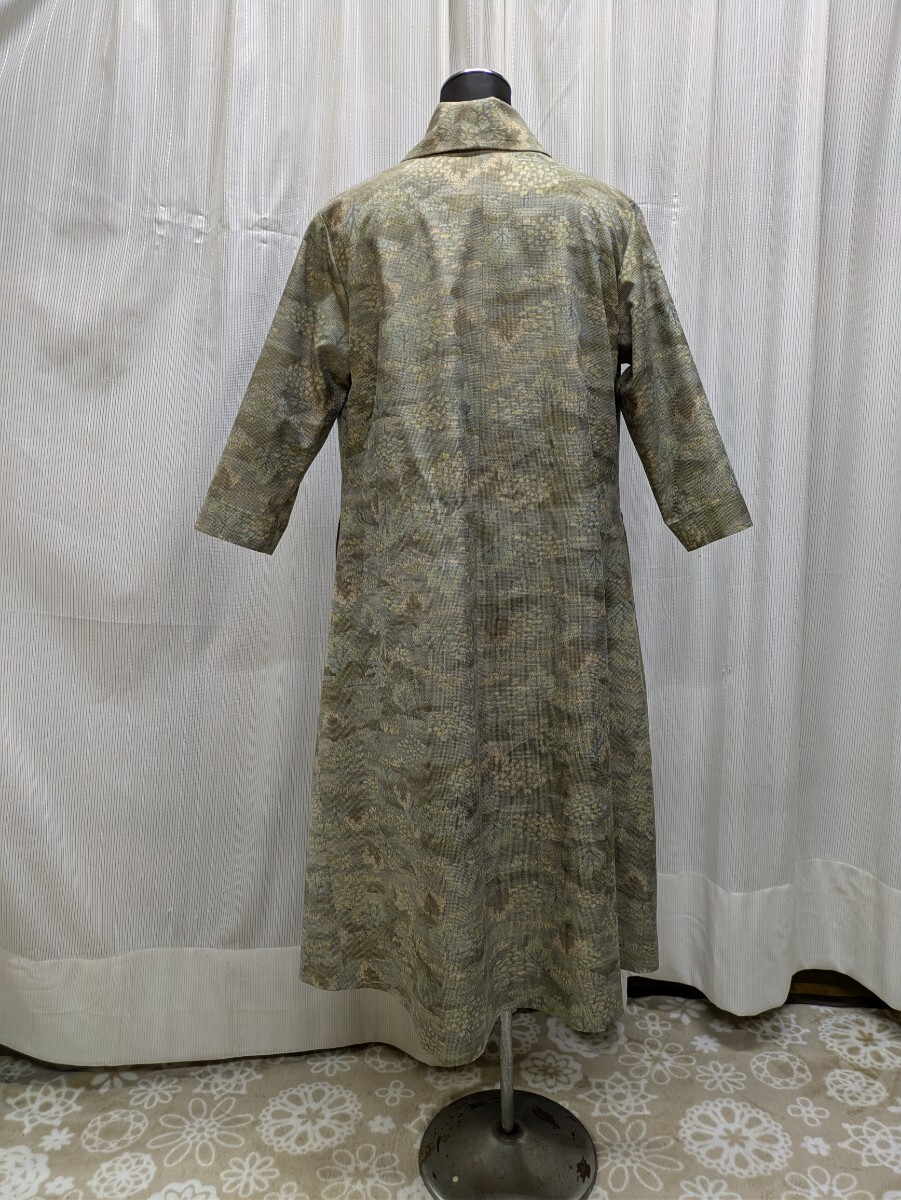 清涼裏地を使った夏のワンピースになります。羽織物で着ていただくこともできます。袖は七分袖になっています。袖裏は付いていません。